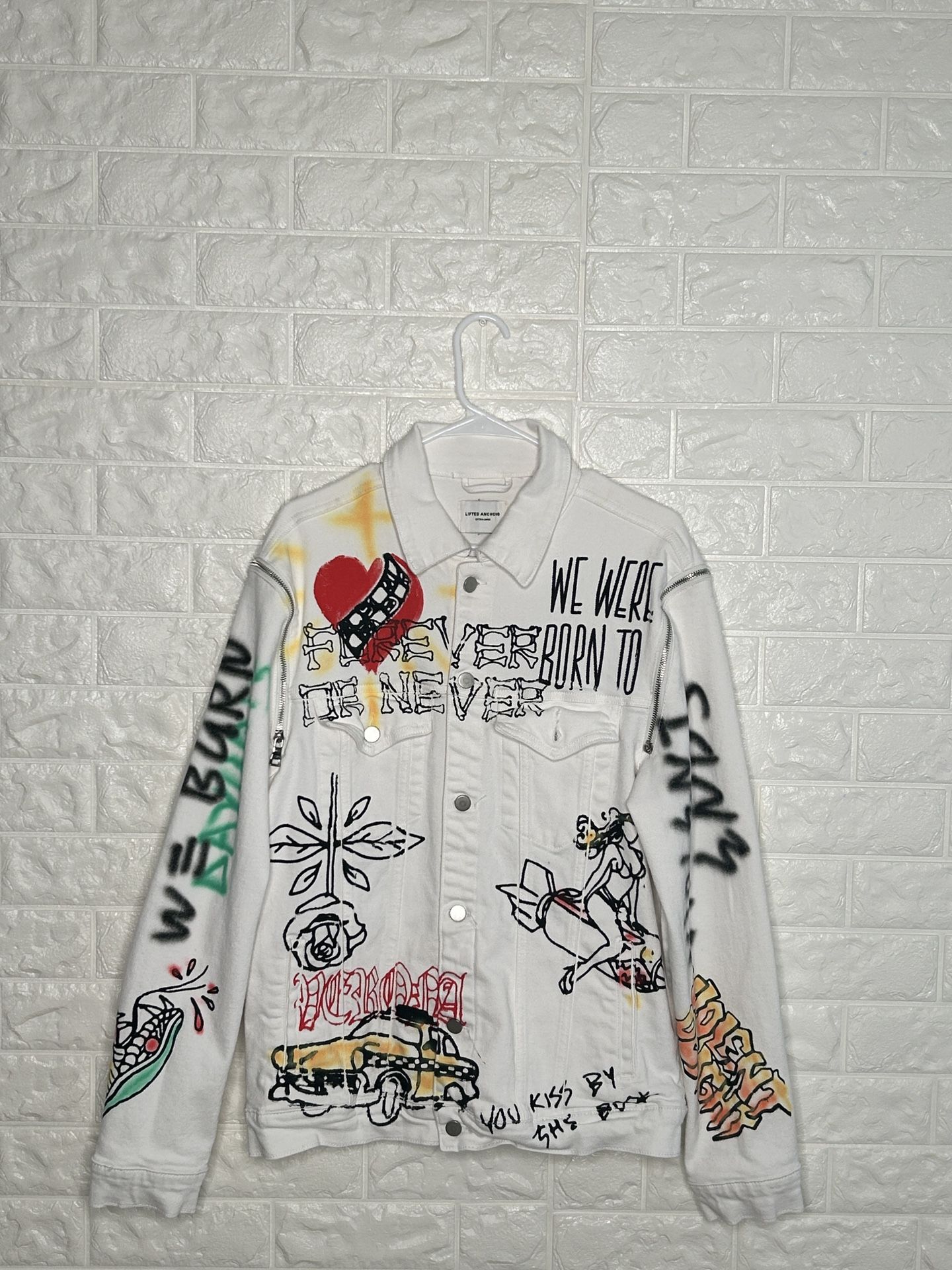 This is a special lifted anchors denim Jacket that is is good condition and runs in a size large (L) (NO LOWBALLING)