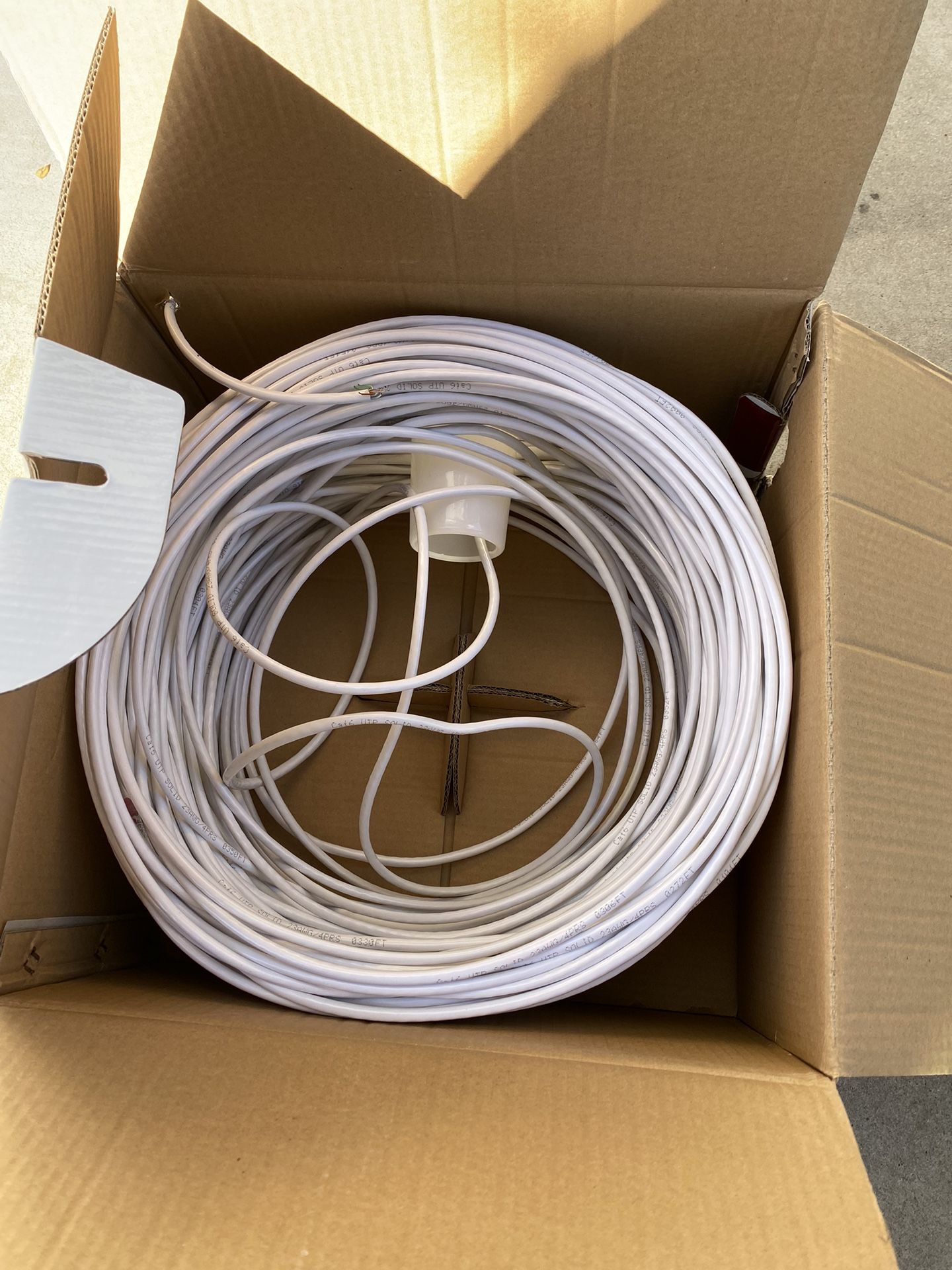 Dripstone Cat6 cable. White. Not sure how many feet left as pictured in box. $35.