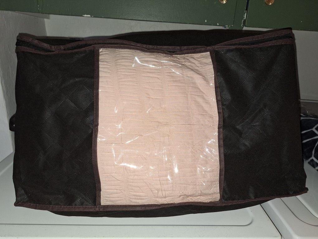 Full sized salmon colored comforter in bag with 1 shampoo. $5