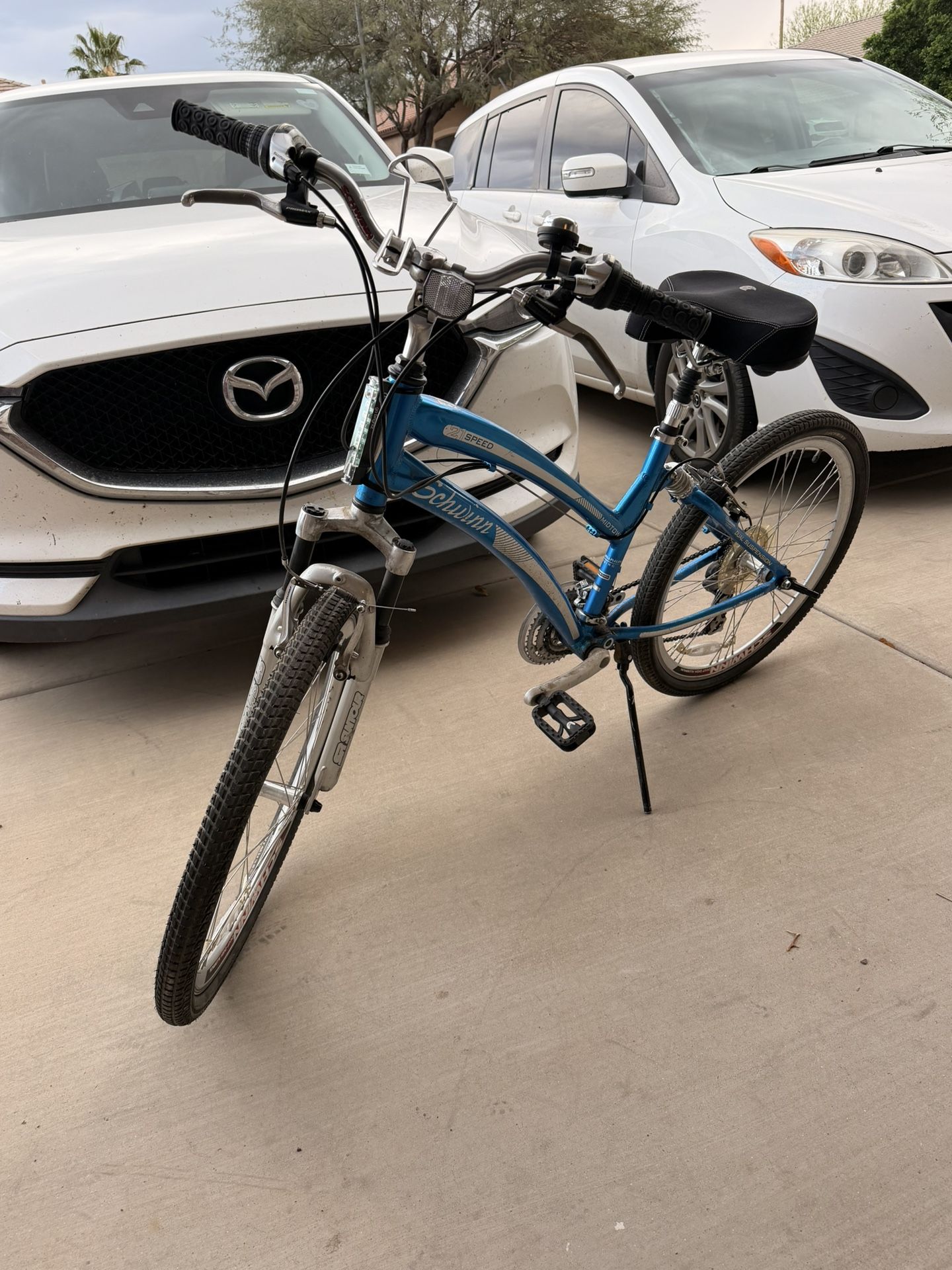 Schwinn midtown 21 speed. Shimano tourney hardware, sr suntour forks, qr front wheel. Bike rides and shifts great, used to pull our kids trailer.