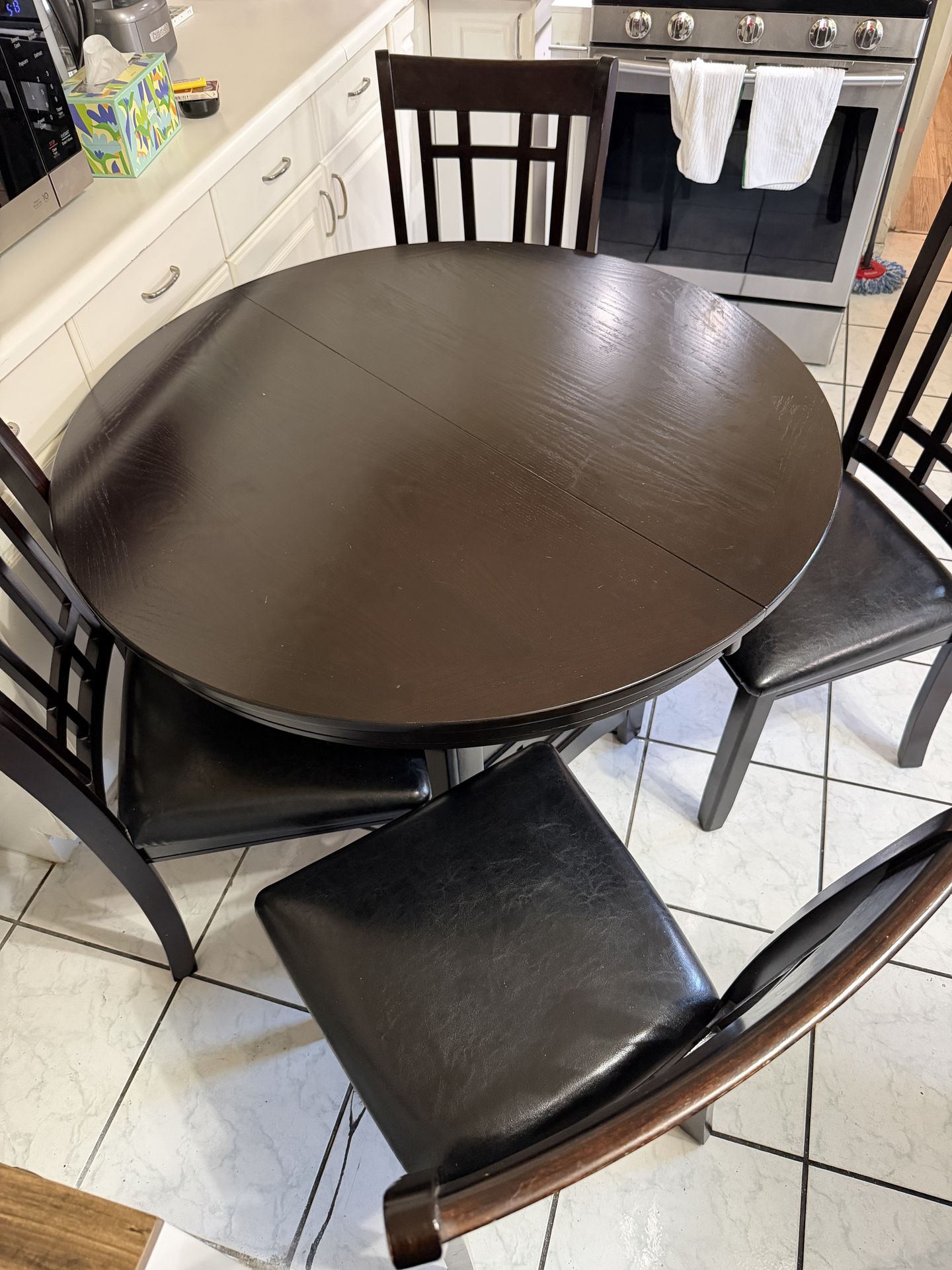 This is a extendable dining table set. Comes with 4 chairs, and the table does open to make it bigger. In great condition. Local Pickup only!