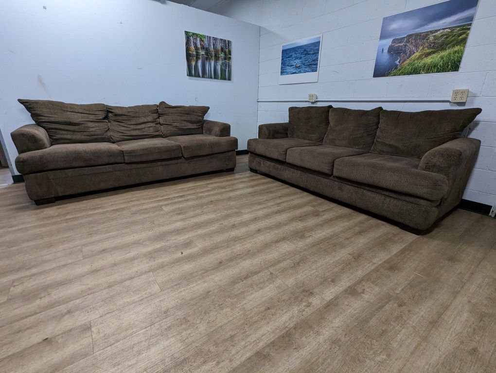 Contemporary Brown Fabric Couch Set