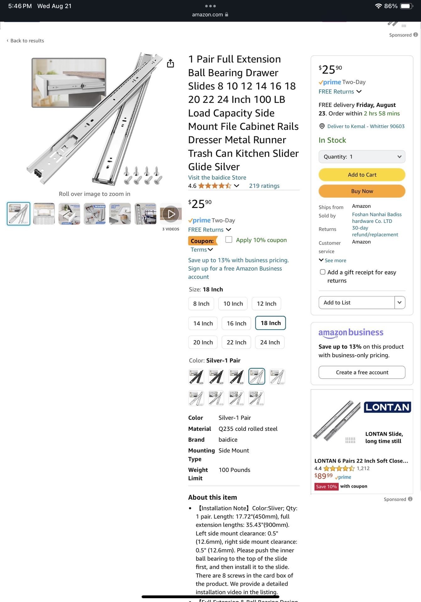Brand new drawer slides purchased to fix the one broken in our kitchen cabinet trash compartment. Instead of fixing the cabinet we ended up redoing the kitchen. Brand new in the box. I believe the one I’m showing is the correct one. It’s an Amazon basics product 18 inch.