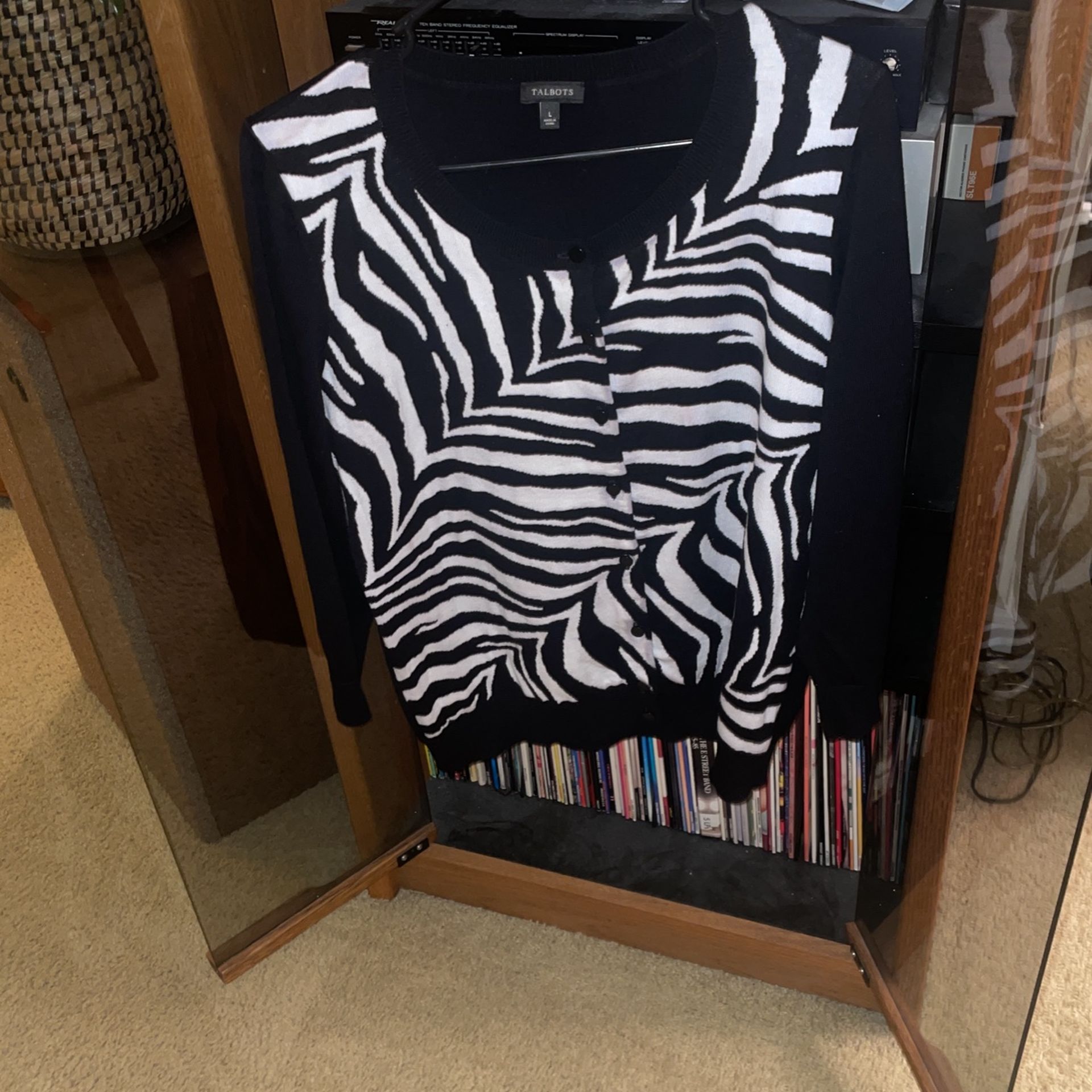 Talbots 3/4 sleeve Leopard cardigan. .Size Lg. Button down. Cash only please.