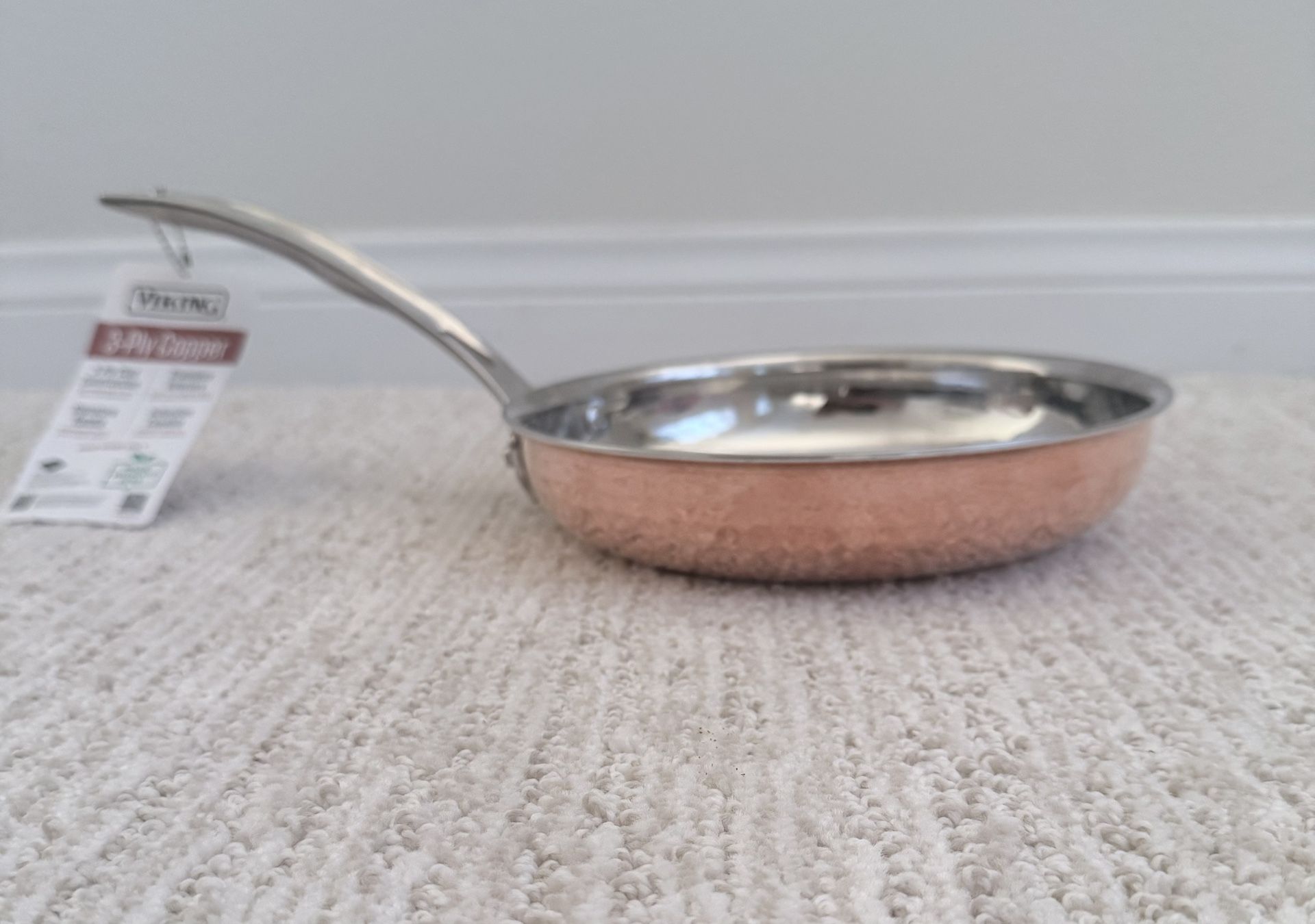 Crafted with a stunning copper exterior, this saucepan not only enhances the aesthetic of your cookware collection but also ensures superior heat conductivity for even cooking. ### Features: - **Premium 3-Ply Construction**: The saucepan features a copper core sandwiched between layers of durable stainless steel, resulting in excellent heat retention and distribution. - **Versatile Cooking**: Suitable for all cooking surfaces, including gas, electric, and induction, making it a versatile addition to any kitchen. - **Ergonomic Handle**: The stainless steel handle is designed for a comfortable grip and stays cool during cooking, ensuring safety and ease of use. - **Easy Maintenance**: Hand wash only to maintain its shine and quality, ensuring it remains a staple in your kitchen for years to come. ### Ideal For: Whether you’re sautéing vegetables, making sauces, or frying, the Viking copper saucepan is your go-to choice for precision cooking. Elevate your culinary skills and impress guests with dishes made in this beautiful and functional piece! Don’t miss out on the chance to own this exceptional cookware. Perfect for both novice and experienced chefs alike!