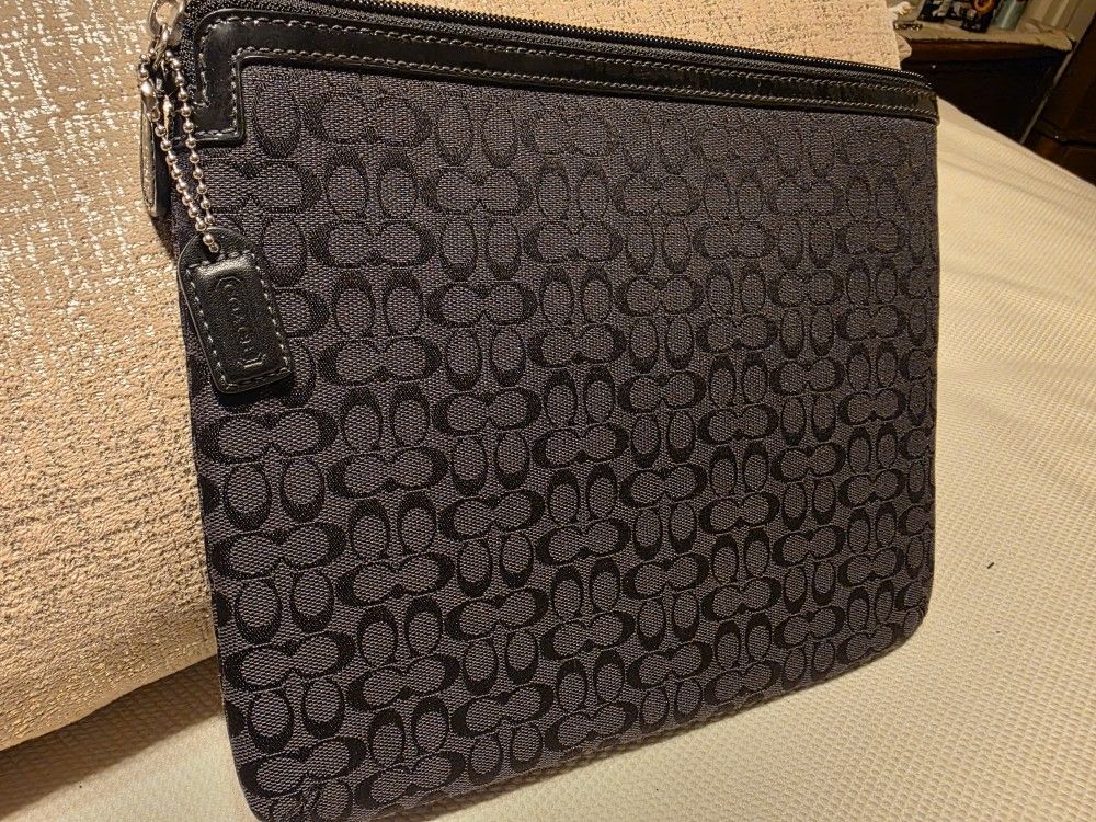 CC Coach Sugnature Black Canvas Tablet Bag Protector Cover 11" X 9"