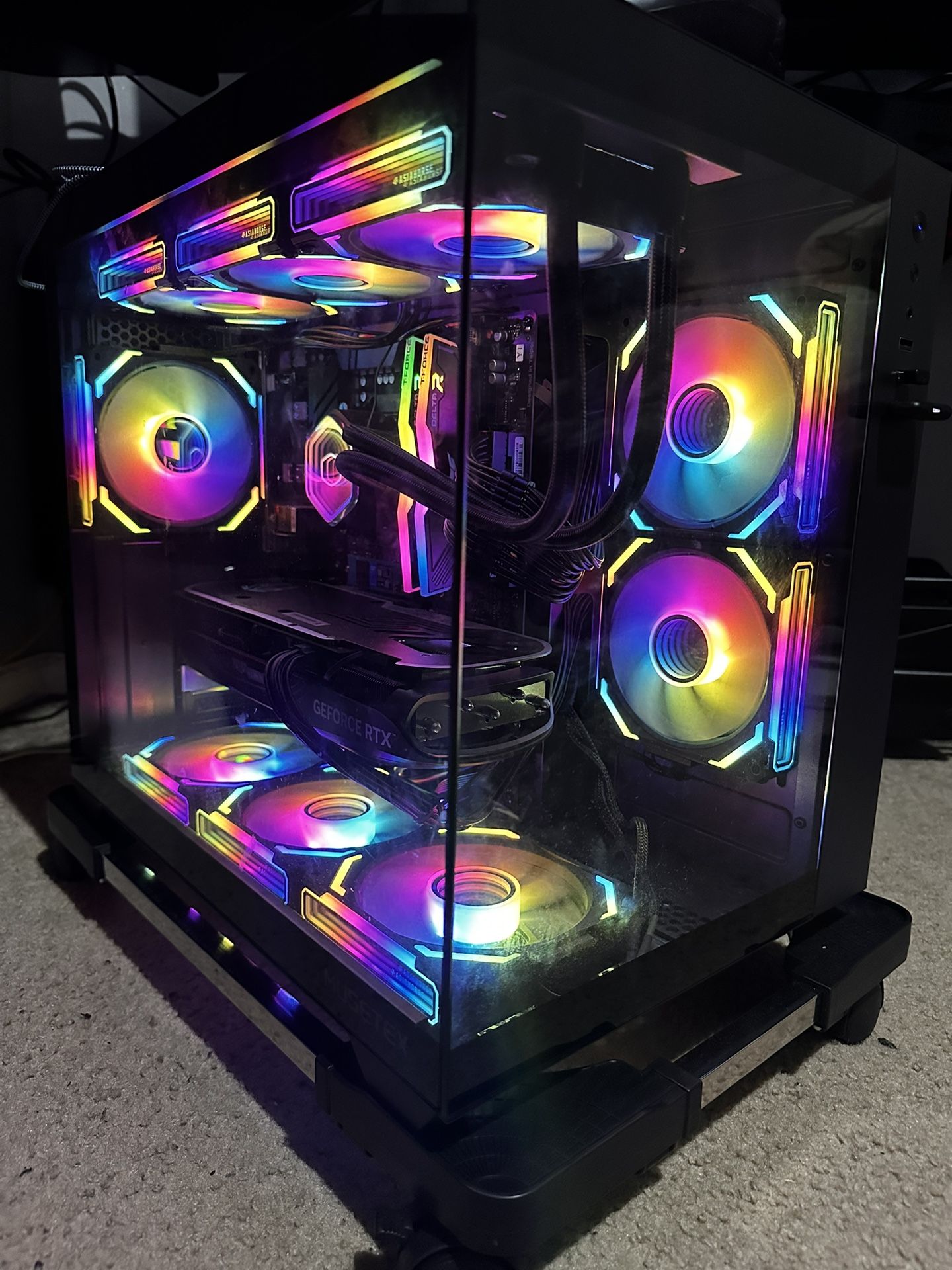Gaming PC great for any age of use ! Selling my rig because I fell out of love with video games and I feel like it’s not for me. I’ve manually built this rig since 2020 and kept it well maintained. Windows 11 OS 4070 Super 12GB Tripple Fan Gigabyte UD AC B550 Mobo RYZEN 7 5700x-3D Cooler Master 360 AIO 32GB DDR4 Ram 2TB (1TB SSD NVMe, 1 TB SSD NVMe) If any question feel free to ask ! Also willing to throw extra and or miscellaneous items : DMA setup (Fuser ,Makcu) ,Xim Matrix, Cronus Zen, Titan Two, Logitech Mouse , and Keyboard 60% Almost full rig is completely RGB including GPU and is controlled via Signal RGB.