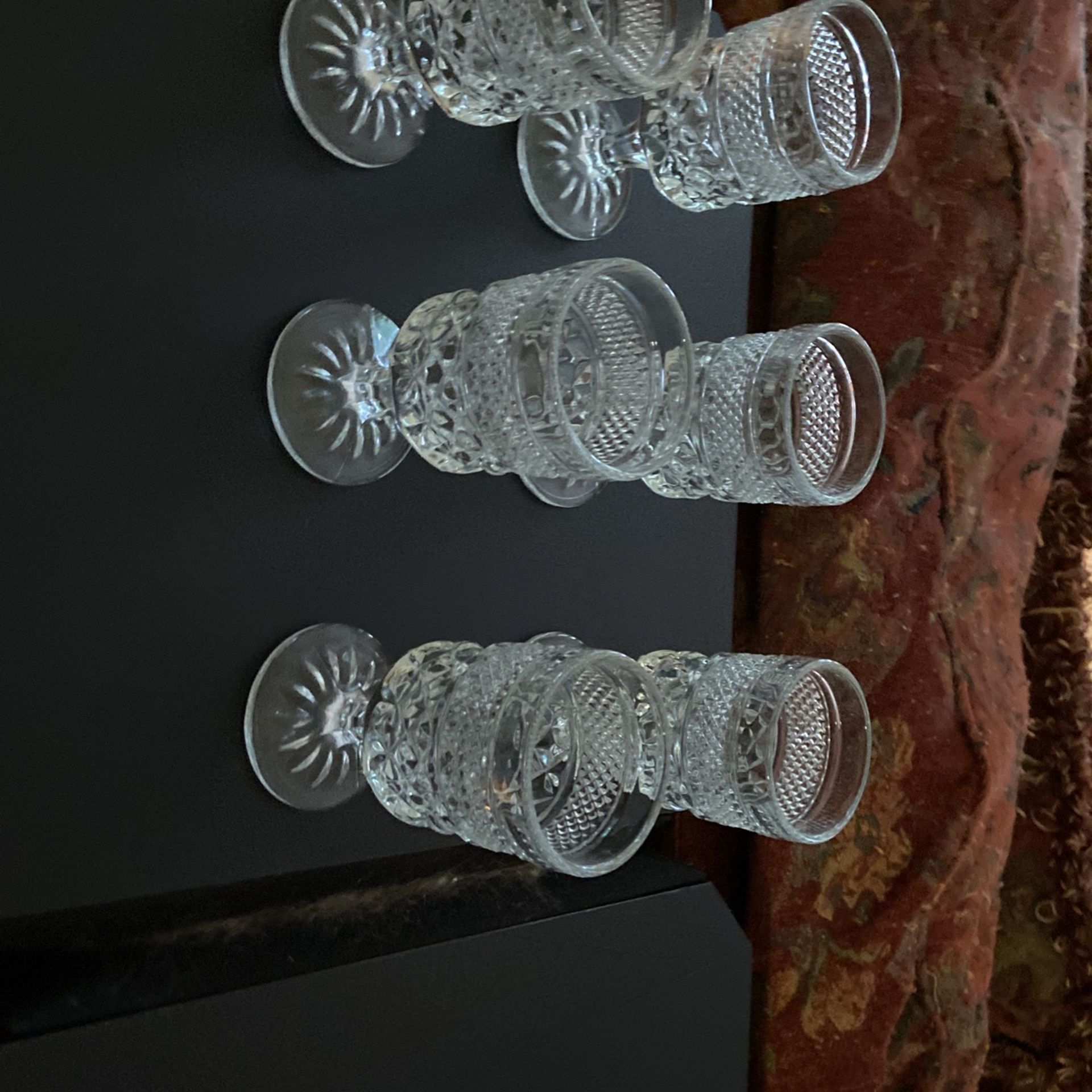 6 Wexford 4oz glass pedestal wine cordial glasses, vintage Anchor Hocking stemware.