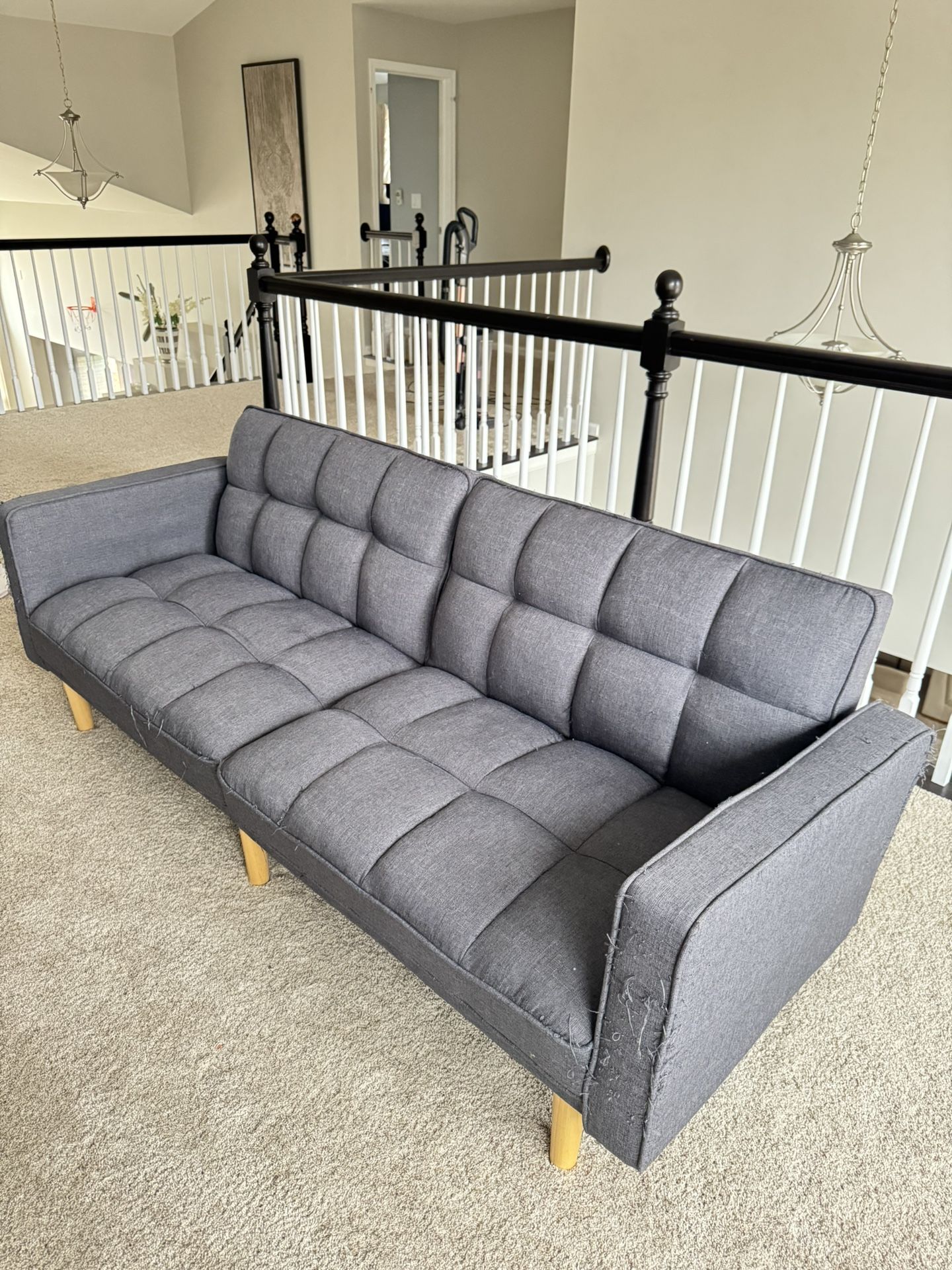 Has some cat scratches, selling with pillows and throw