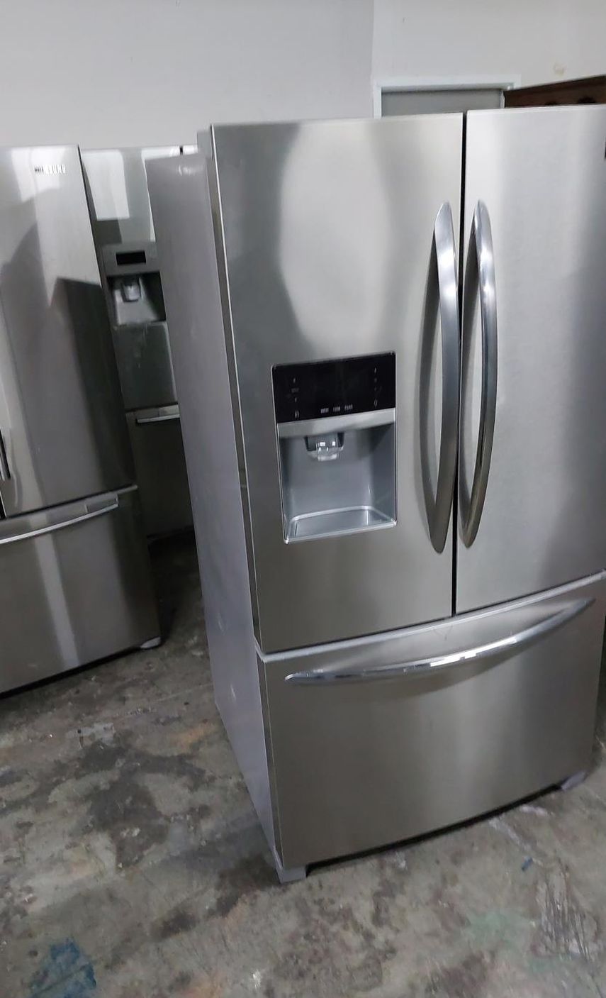 Upgrade your kitchen with this French Door fridge in stainless steel. With a glossy finish and minimal scratches, it remains an elegant choice. The ice maker and water dispenser are perfect for busy households. Inside, enjoy the benefits of adjustable shelves and ample storage. Its energy-efficient operation aligns with modern home needs. Comes with a 60-day warranty. Same day delivery available. DM / Message us for more info. Hablamos español.