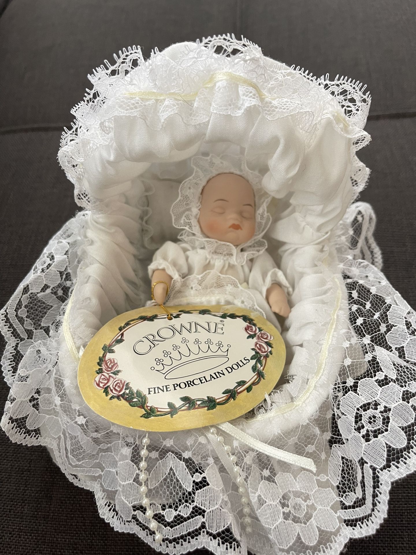 Vintage Porcelaine Baby Doll In Crib 1998 Artmark (Crown Fine Porcelain Dolls)