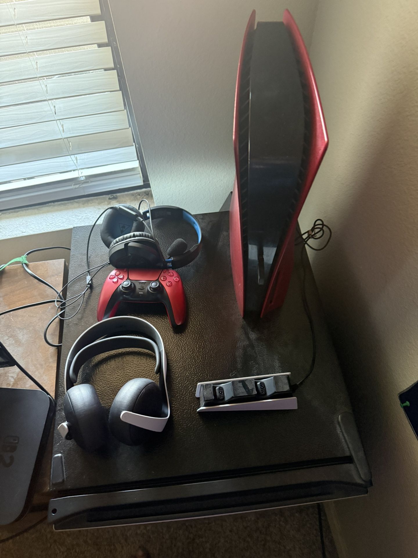 !!!!!Will ignore lowballs!!!!!! EVERYTHING IN LIKE NEW AND WORKING CONDITION Includes: PS5 standard disk edition Sony Red Plates (red panels on system) Pulse Elite Wireless Headset Turtle Beach Headset Sony Dualsense Controller Charger Metallica Red Controller HDMI cord Power cable for system Wall mount/ charger for headset Can also throw in: Samsung 990 pro with heat sink 1tb hard drive to give you 2 tb of memory on the system for another $125
