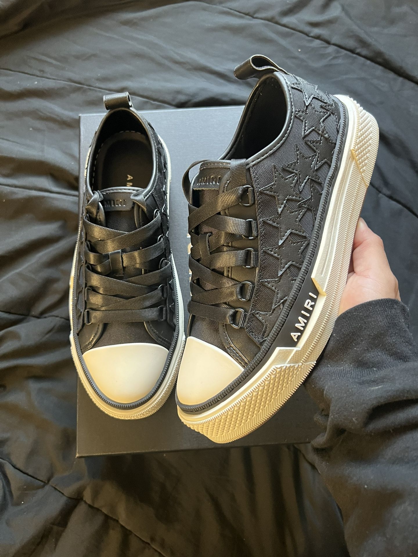 Black Amiri star trainers Brand new 10/10; (Og all) DEADSTOCK Size 9; will fit 9.5 Have any concerns dm me. Asking less