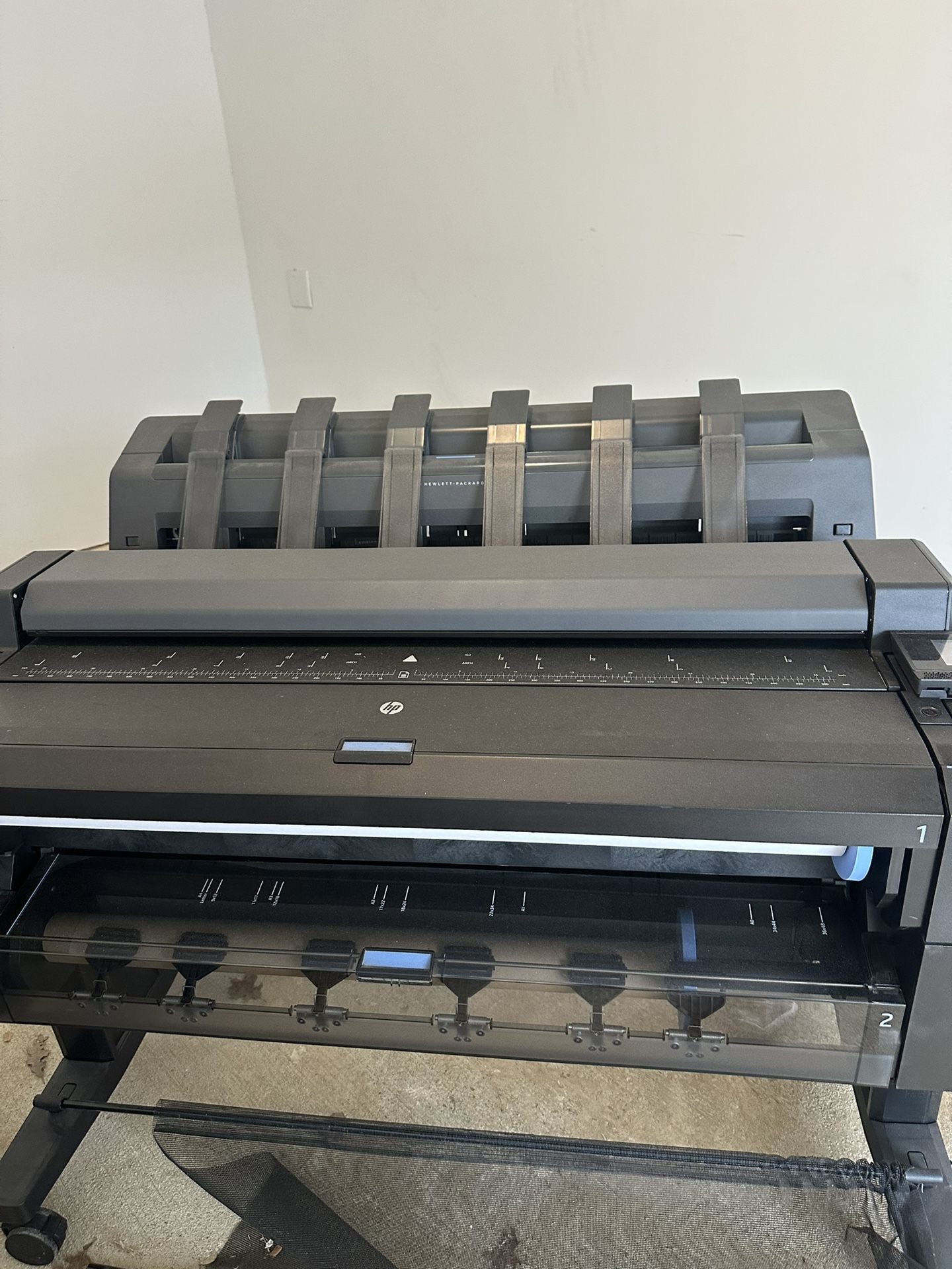 HP DesignJet T2500 – Large Format Printer (For Sale) Professional-grade HP DesignJet T2500 large format printer, ideal for architects, engineers, graphic designers, and print shops. Delivers fast, high-quality prints with sharp lines and vibrant colors. Picked this up at a Local storage Unit and it turns on works but has not been fully Tested