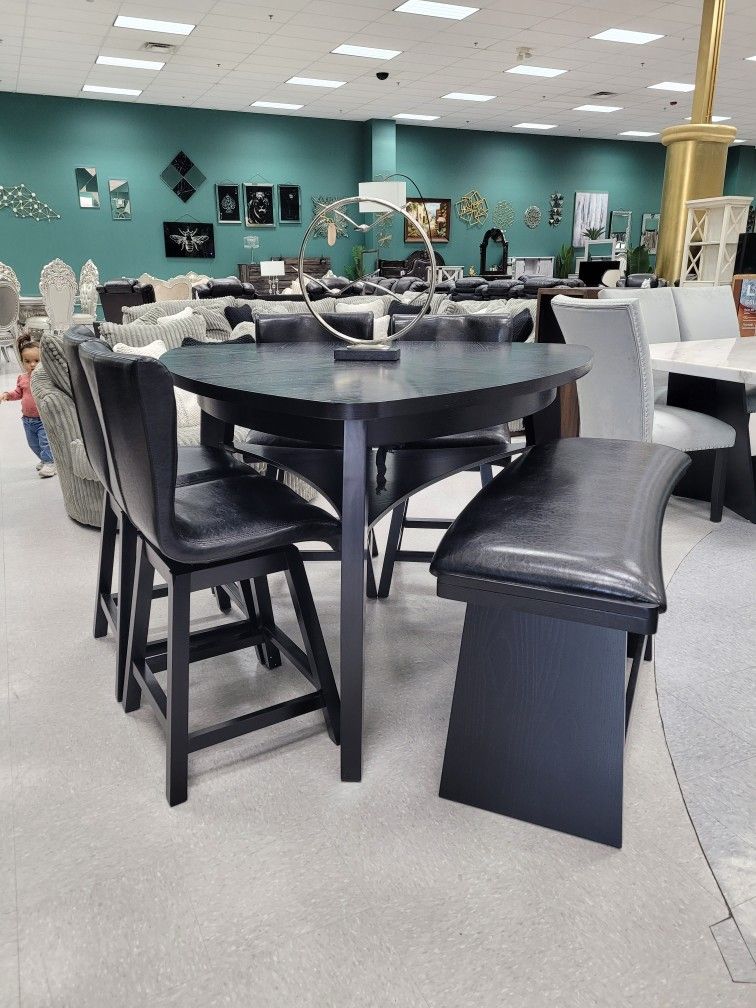 Nice dining set with 4 swivel chairs and 1 bench. PUB DINING SET. FOR $1,399 Visit us today and take it home with $30 down 4 months to pay 0%interest Hablo español Entregamos a domicilio
