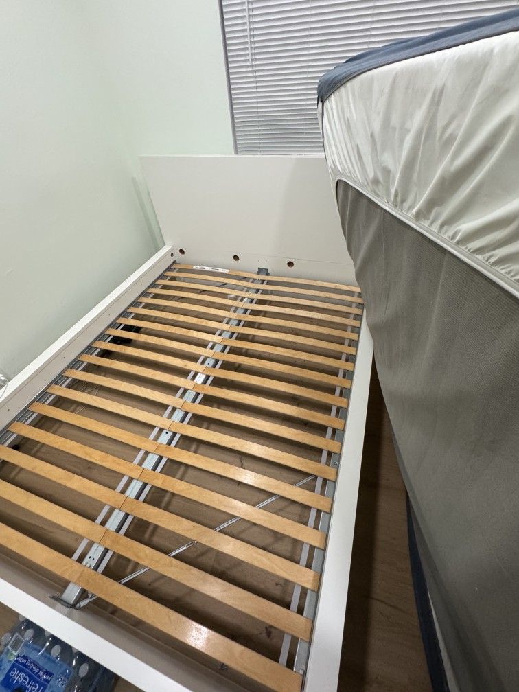 Hi, I have a Ikea bed frame size Queen. In excellent condition. With wood slates. Can help disassemble or help carry out from the house. Let me know when do you want to check it out. Thank you.. I am near Walmart on College Avenue 3412 College Ave, San Diego, CA 92115 (Just a few blocks away)