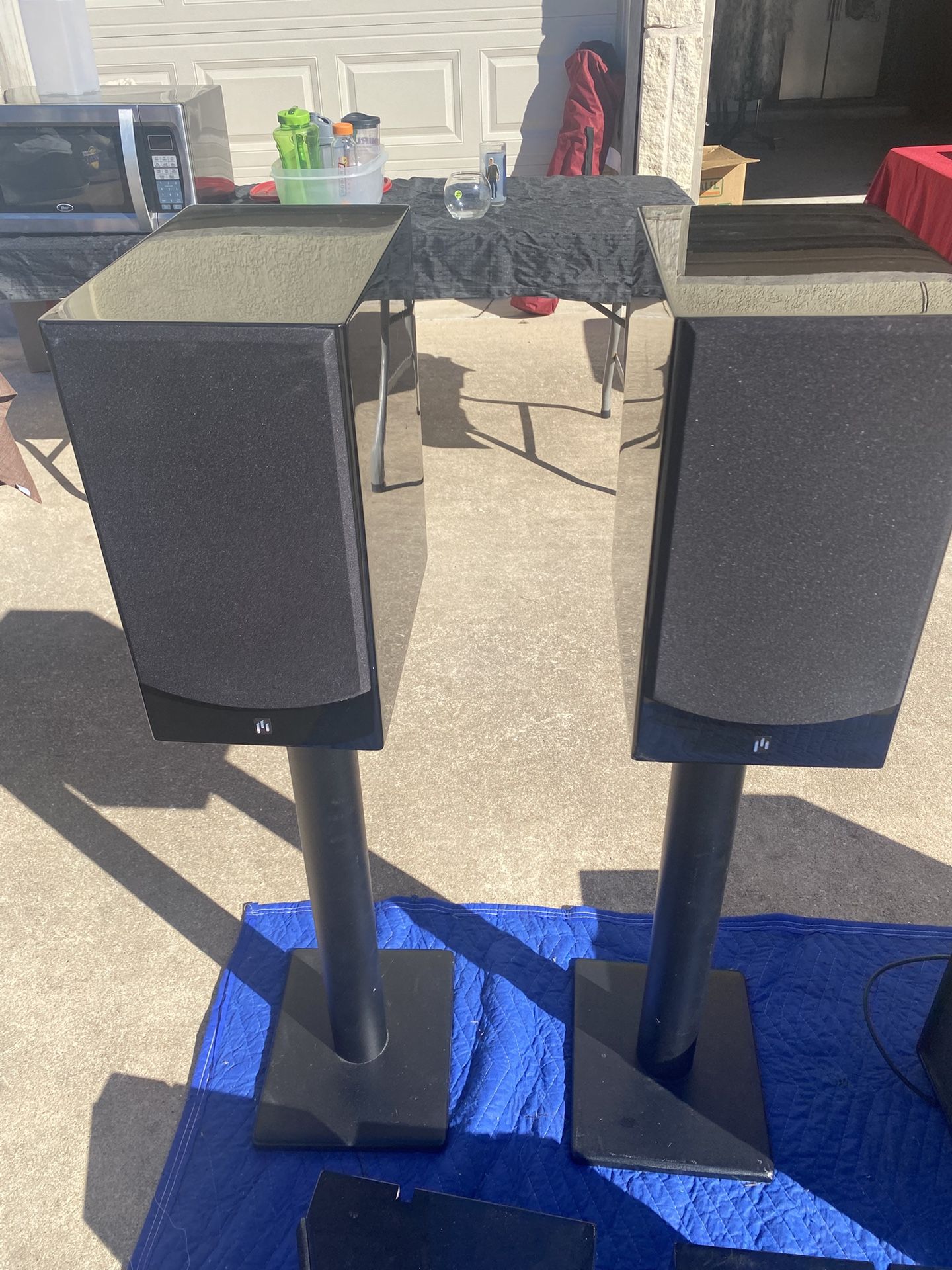 Custom 6 Speaker Aperion Sound System. In great condition. System sounds AMAZING!!! 2-6.5” Speakers with stands 2-5.5” Speakers Full Surround 1- Dual 6.5” Center Speaker 1-Powered Sub Woofer