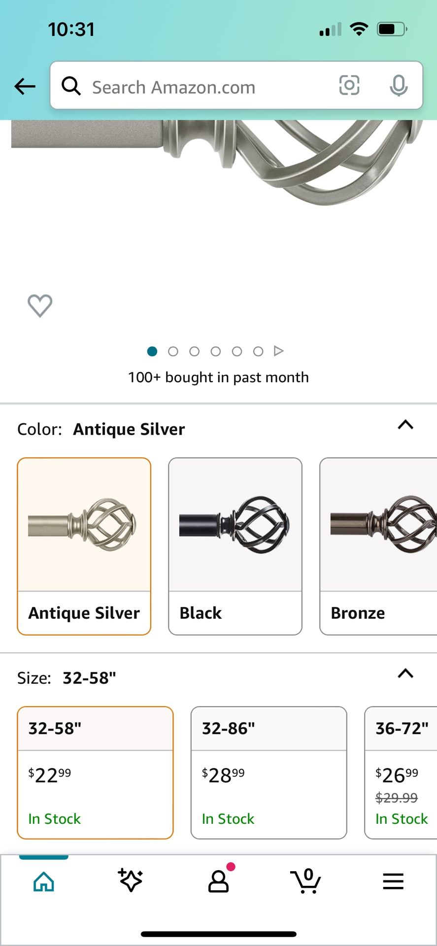 KAMANINA Antique Silver Curtain Rod 32 To 86 Inch(2.6-7.1ft), 1 Inch Adjustable Single Curtain Rods For Windows, Decorative Drapery Rod With Twisted Cage End Antique Silver 32-86"