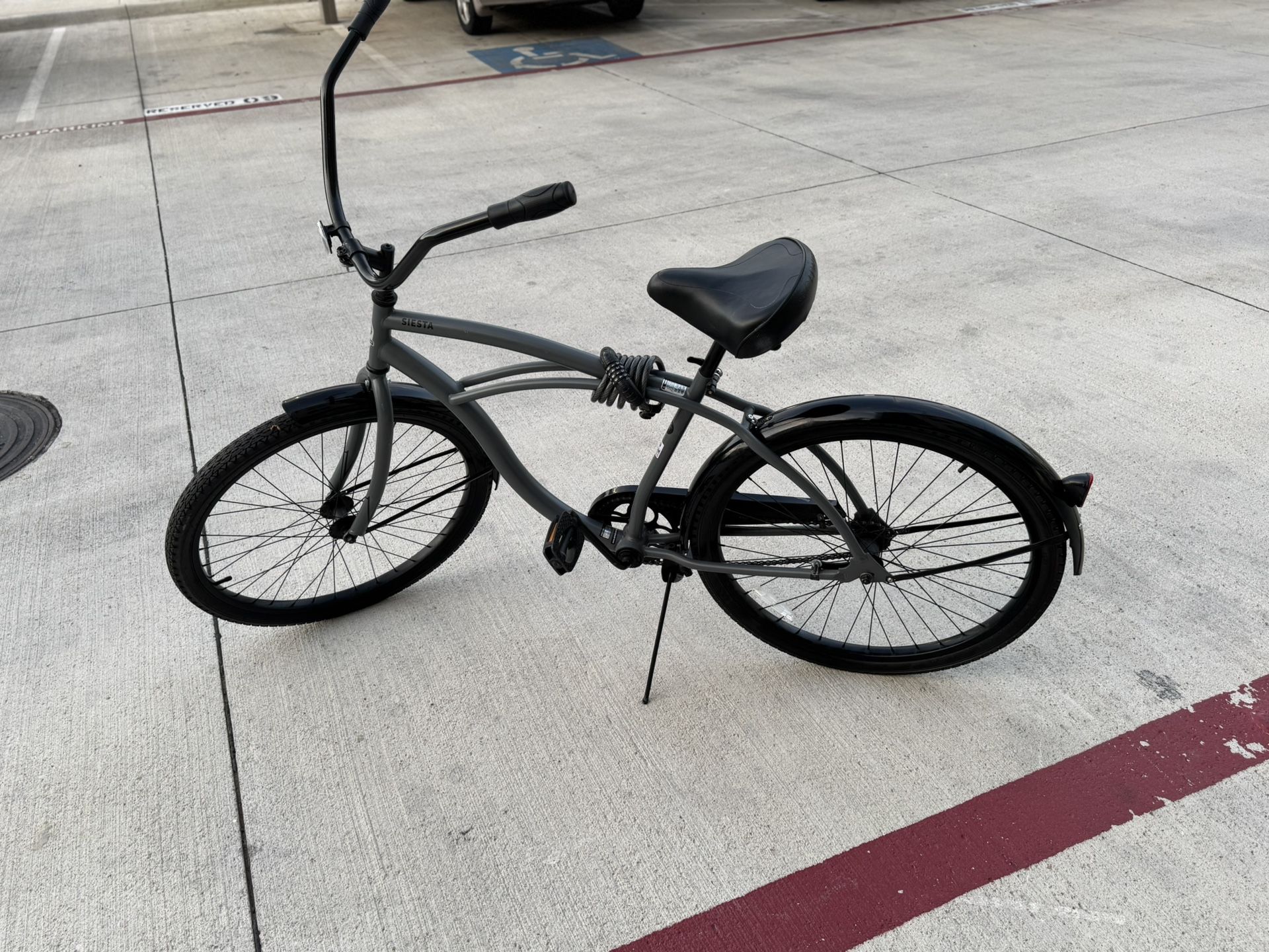 Schwinn Siesta cruiser bike, single speed, 26-inch wheels, charcoal, mens style