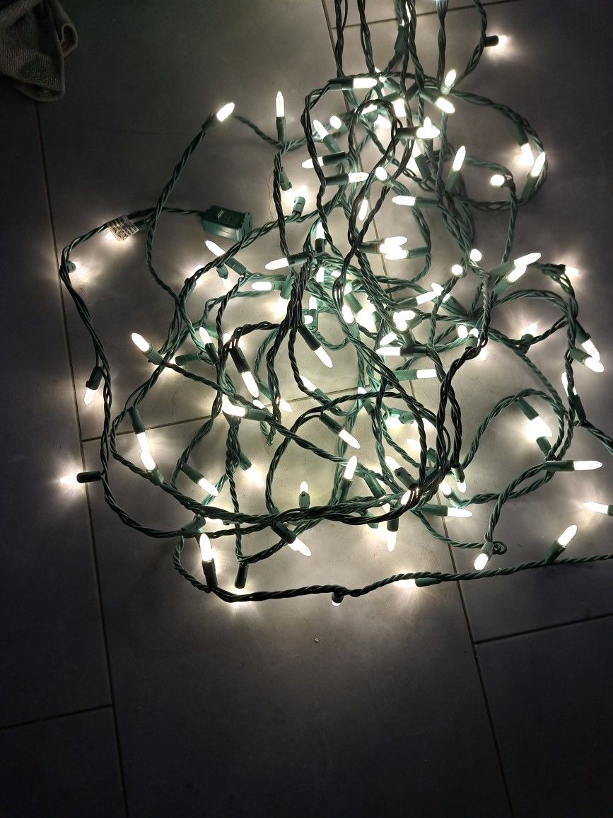 150 LED LIGHTS Model: LED-7MM-150(0.75) Green wire Comes with fuses and replacement bulb Used All bulbs working. All bulb coverings are in great condition. Check out my other listing for more Christmas/ "Holiday" lights!