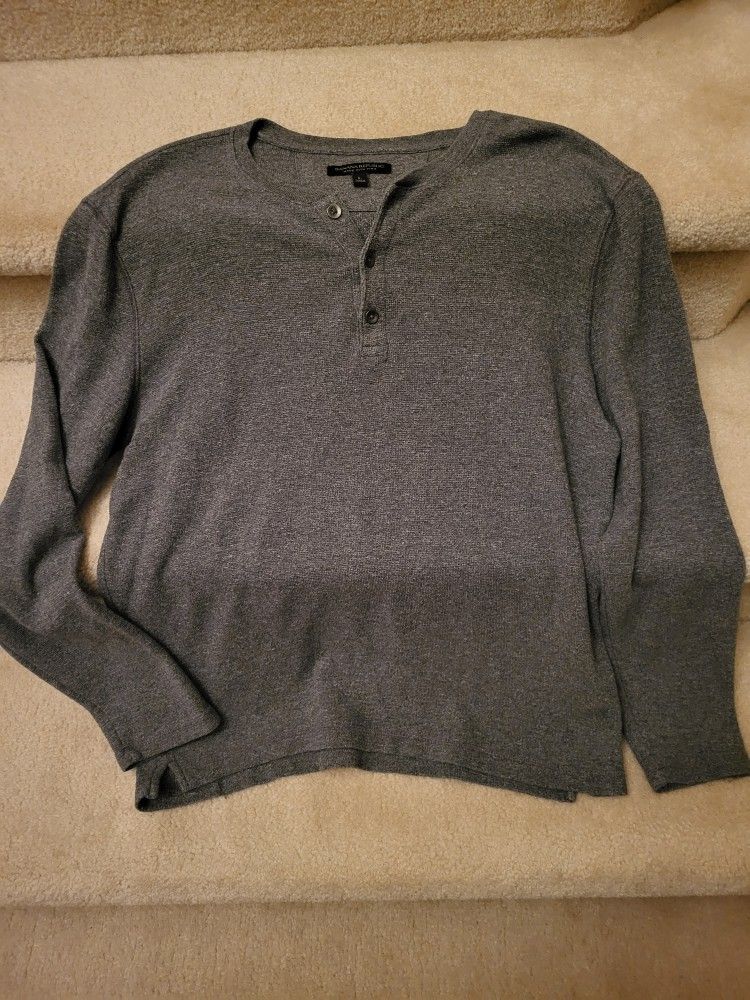 $20 New Banana Republic nwt Men's Size Large, long sleeve Double Knit Henley Shirt Gray (Retail $55-$80) WOODBRIDGE, VIRGINIA 22193 Minnieville and Spriggs Rd Smoke-free
