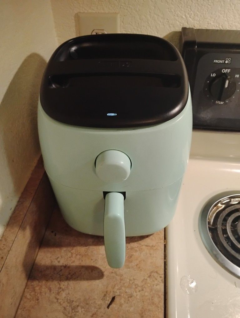 Dash 2.6-Quart Air Fryer – Turquoise Clean, tested, and works perfectly. Heats up fast and cooks evenly. Compact size, great for small kitchens, dorms, or quick meals. Basket included. Tested and ready for pickup.