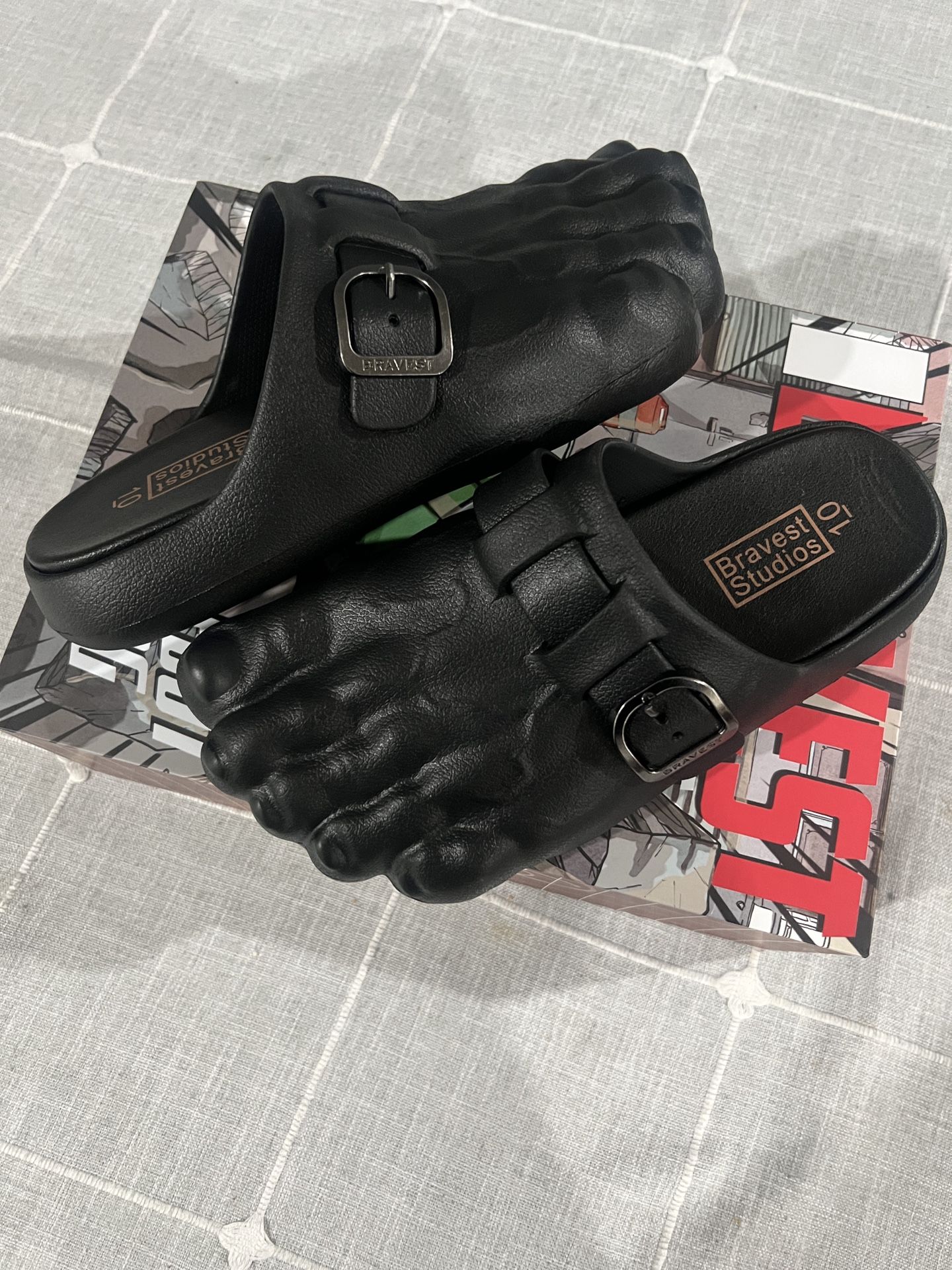 Black toes adjustable buckle high quality faux leather insole and footbed none slip outsole multi panel collectors quality box included band new Foot Clogs size 10. Pick up in laurel