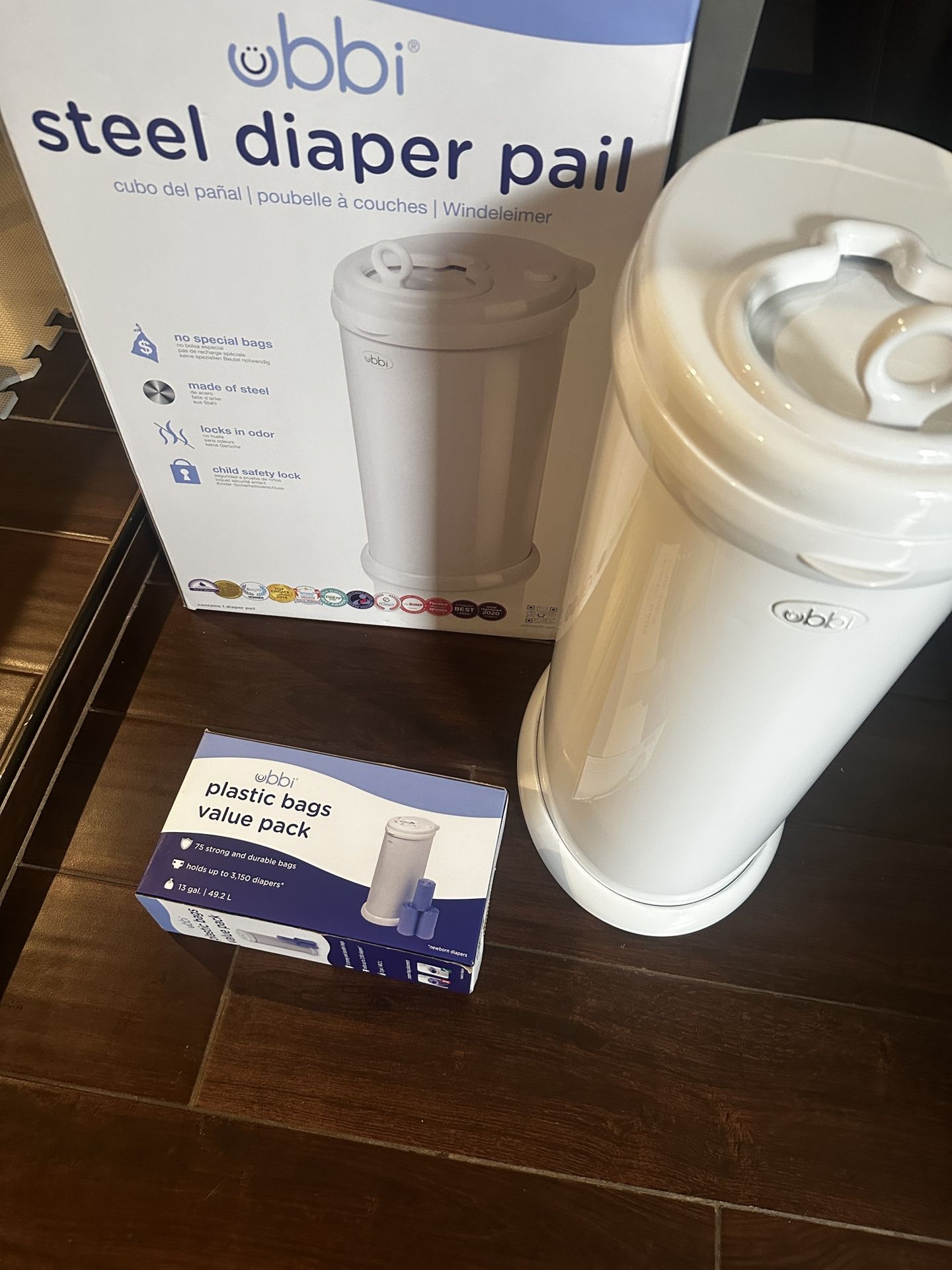 Ubbi Stainless Steel Diaper Pail & Box Of Diaper Pail Bags