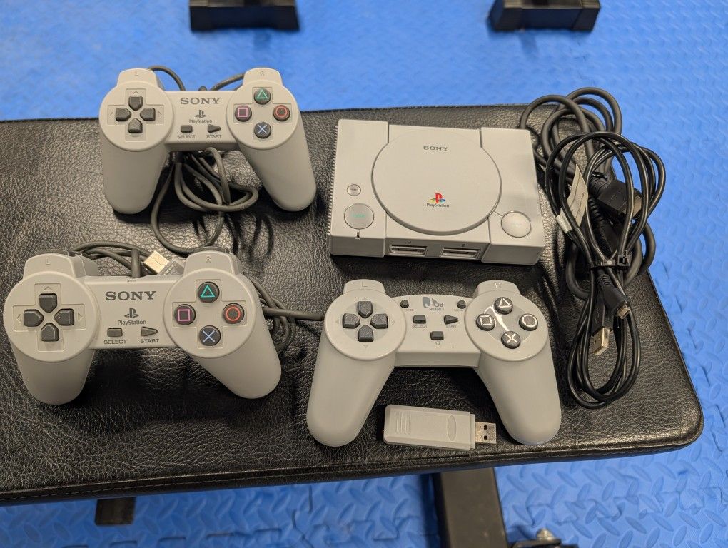 PSOne Classic One wireless controller with USB dongle Two 4.5' wired controllers Power cord HDMI Cable Games included: Battle Arena Toshinden Cool Boarders 2 Destruction Derby Final Fantasy VII Grand Theft Auto Intelligent Qube Jumping Flash Metal Gear Solid Mr Driller Oddworld: Abe’s Oddysee Rayman Resident Evil Director’s Cut Revelations: Persona Ridge Racer Type 4 Super Puzzle Fighter II Turbo Syphon Filter Tekken 3 Tom Clancy’s Rainbow Six Twisted Metal Wild Arms *Games are built into the system. It does not take discs. You cannot download additional games.*