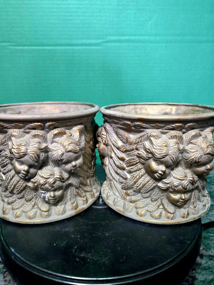 Vintage 2 Cherub Pots, Flowers Planters, Vases 5"×6"