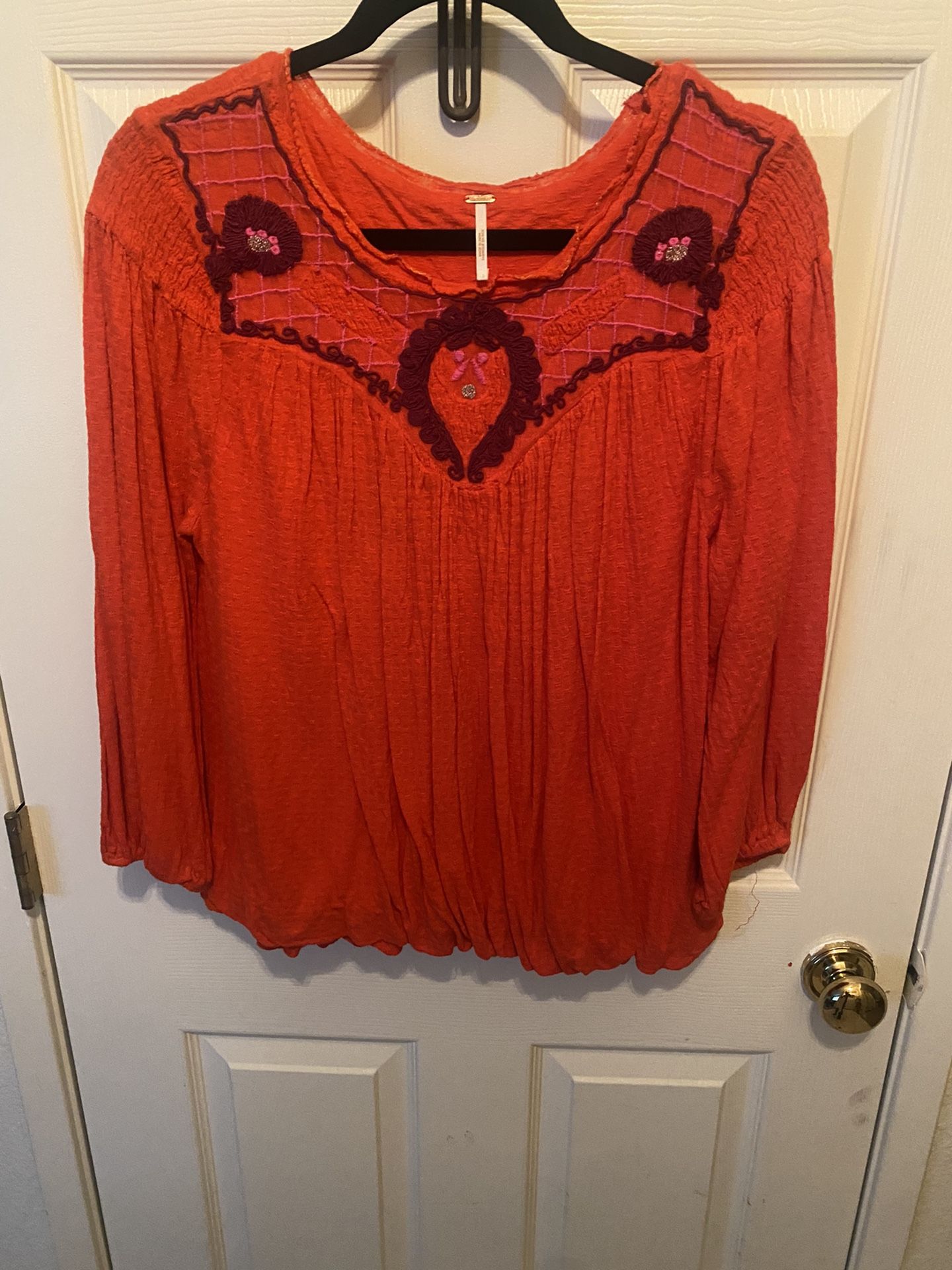Orange peasant Top with beautiful embroidered flowers
