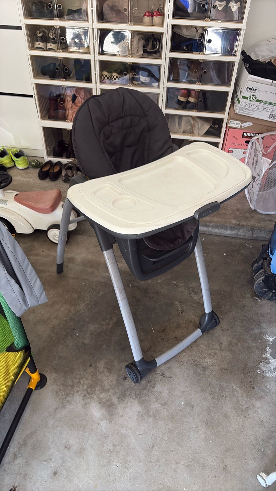 Baby chair that can be converted to booster. Foldable and comfortable. Missing straps but work just fine without them. Baby is secure for feeding time.