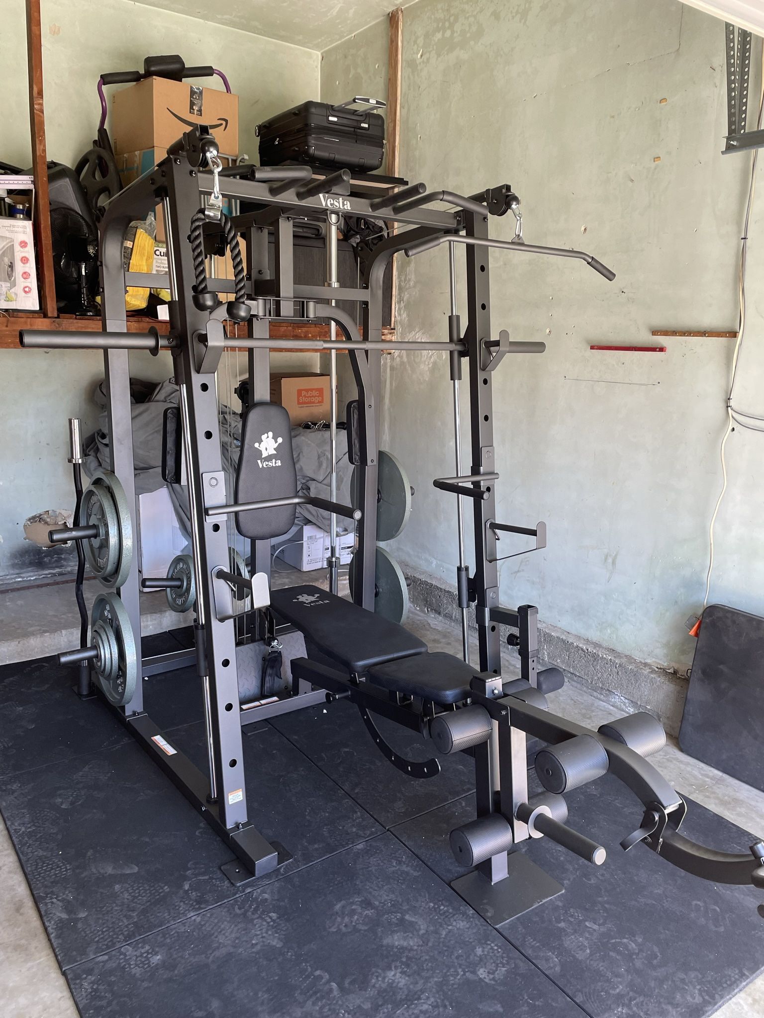 Vesta Fitness Smith Machine 1001 w/Bench Attachment | 230lb Bumpers Olympic Weights | 7ft Olympic Bar | Fitness | Gym Equipment | FREE DELIVERY 🚚
