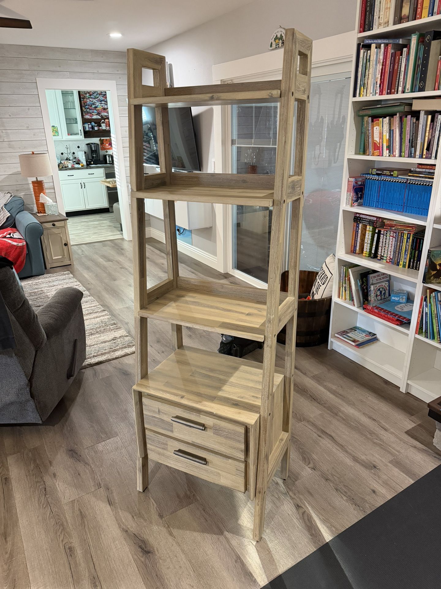 Ladder shelf Ashley Furniture brand Farmhouse Two drawer 4-Tier 16” D x 23-5/8” W x 71-1/8” H