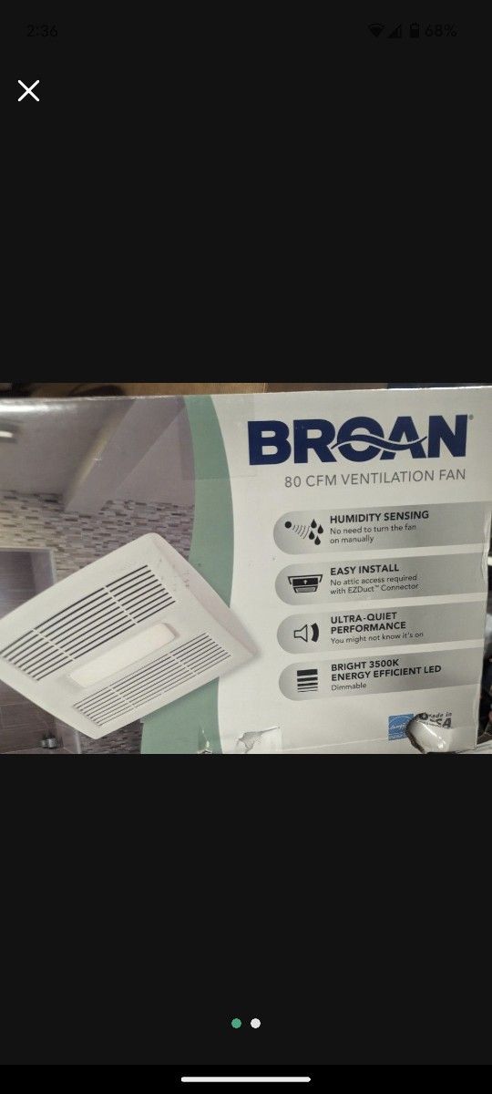 80 CFM ventilation fan. Humidity sensing, 3500K LED