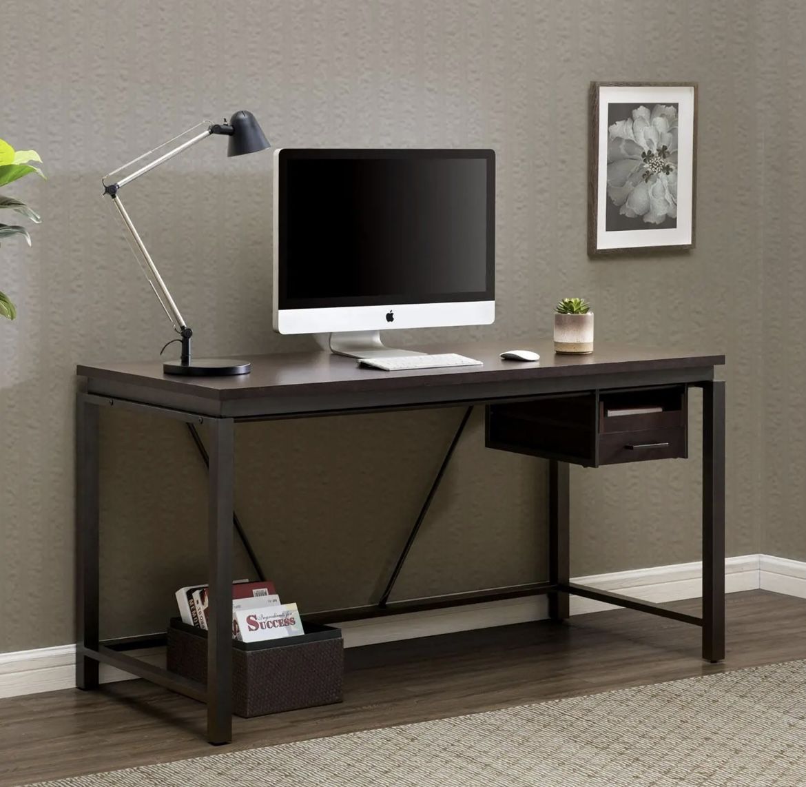 Sunjoy 58 Brown Wood Finish Writing Study Laptop Computer Desk Home Office Workstation