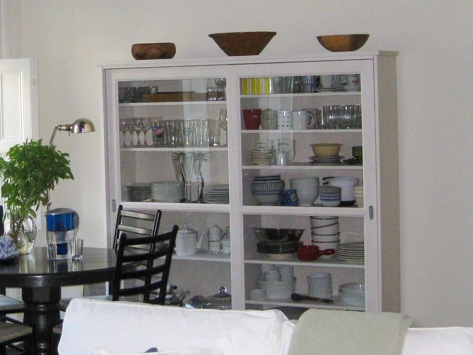 White IKEA Hemnes Wood Cabinet - Great for books, dishes, collectibles, etc. Discontinued style. Very well made. I love this cabinet but just don't have room in my new place. It has a tiny ding on the leg where we had trouble getting it up the stairs. There is also a small spot that should.eaaily clean off with soap & water. All shelves & pins included. Retail $350, asking $150