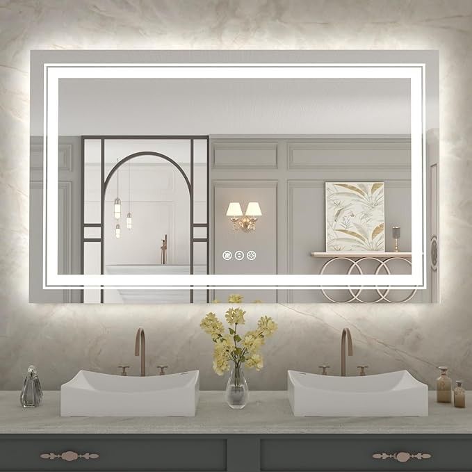 Stepless Dimmable LED Mirror for Bathroom,Colored Lighted Bathroom Vanity Mirror,Anti-Fog,Memory Function,Shatter-Proof Brand -WTTY Room Type- Bathroom Shape- Rectangular Product Dimensions- 55"L x 30"W Frame Material -Glass