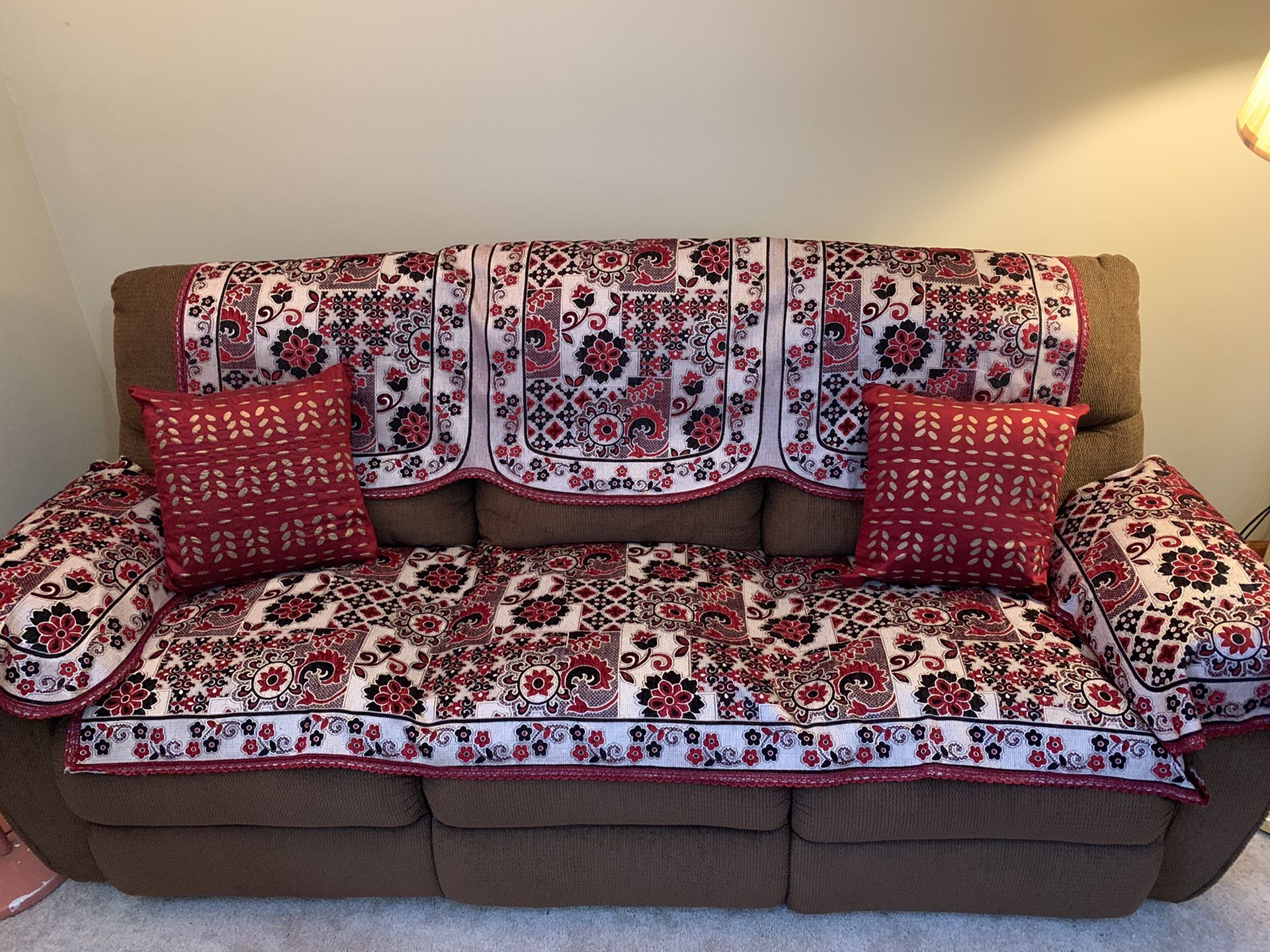 Antique Brand New 3-seater and 2-seater Sofa covers (4-piece per sofa for total of 8-pieces) AND 2-sets of pillow covers (includes 4-piece pillow covers) for combined price of ONLY $149..!! Sofa covers and pillow covers are sold individually as well! Individual prices: 8-piece sofa covers for 2-sofa sets = $149.99 4-piece pillow covers for 2-sofa sets = $39.99