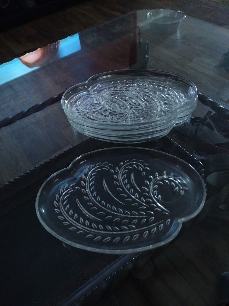 up for sale is a heavy-duty glass snack tray can be used for different things like for tortilla chips with dip a big ashtray or for whatever else you might need it for they very heavy and I'm selling them all as a bunch together not sold separately
