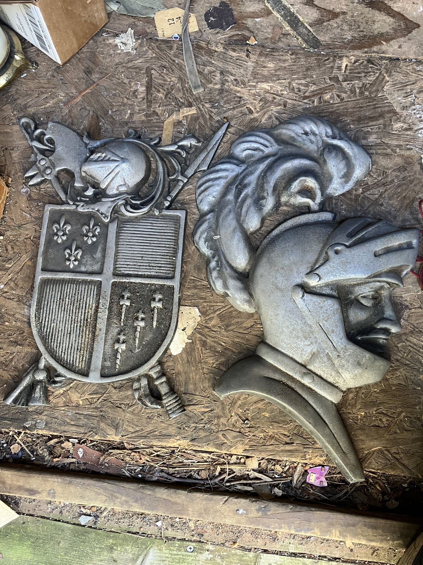 Large Medieval Knight In Armor Large inches Life Size Metal Wall Plaque Coat Of Arms, Shield, Sword