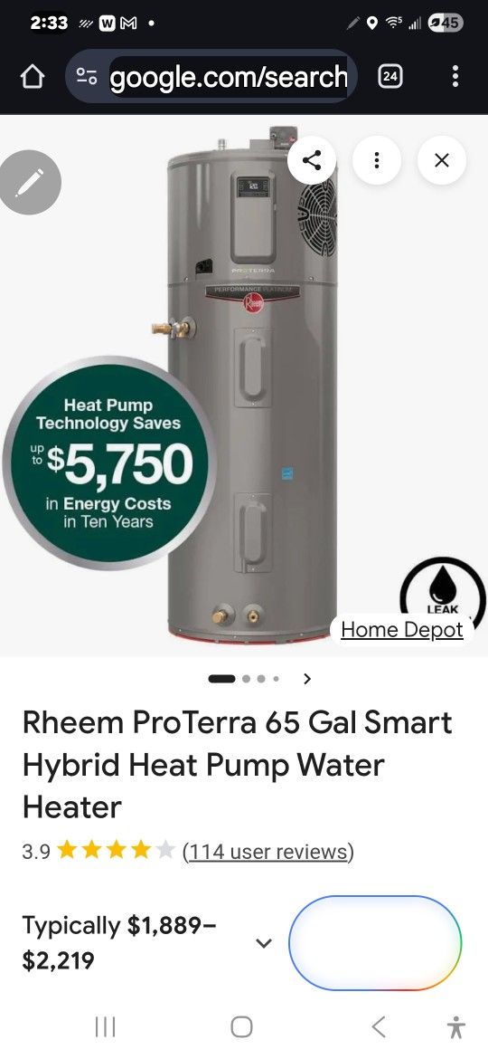 RHEEM Proterra 65 Gallon HYBRED ELECTRIC Water HEATER