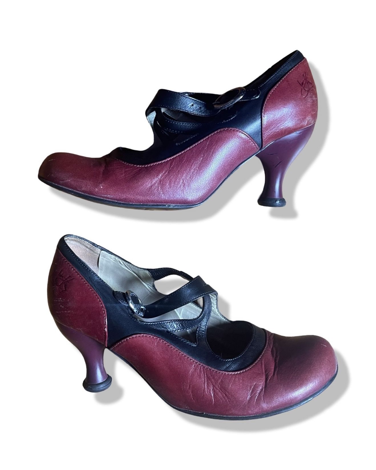 Used, but in great wearable condition! These still have life left in them! In 1899, troublesome teenager Pearl Hart (age 17) left her hometown in Ontario for the Wild West. While in Tucson, Pearl fell in love with a mustachioed shyster named Joe Boot, and together they formed a successful mugging duo. After finding out that her mother had a serious illness and needed money, Pearl set her sights on bigger game and became the first stagecoach robber in Arizona. After getting caught napping by the Sheriff, Pearl was sentenced to 5 years of hard time in an all men's penitentiary - making her not only the first woman to go to prison in Arizona, but the first to get pregnant in prison! She was released afterwards due to the fact that her two cell mates were the former Governor and a Minister. With contrast leathers, an ankle buckled strap, 2.5" Fellowship-hi heel and tunite Bellevue sole, this Mary Jane was sure to get you in and out of trouble. Keep pushing west and beyond your imagination. *The floral patent Pearl Hart is built partly from a delicate Italian leather that features real dried flowers underneath a thin layer of clear patent. To avoid damaging this material, please treat it with your finest tender love and care. They come from a clean, dry, smoke-free home. Please let me know if you have any questions. I am happy to answer them! Available for pick up or delivery (depending on your location). Will also ship if needed. Cash preferred. Can also take Venmo, Cash App, Zelle, and PayPal.