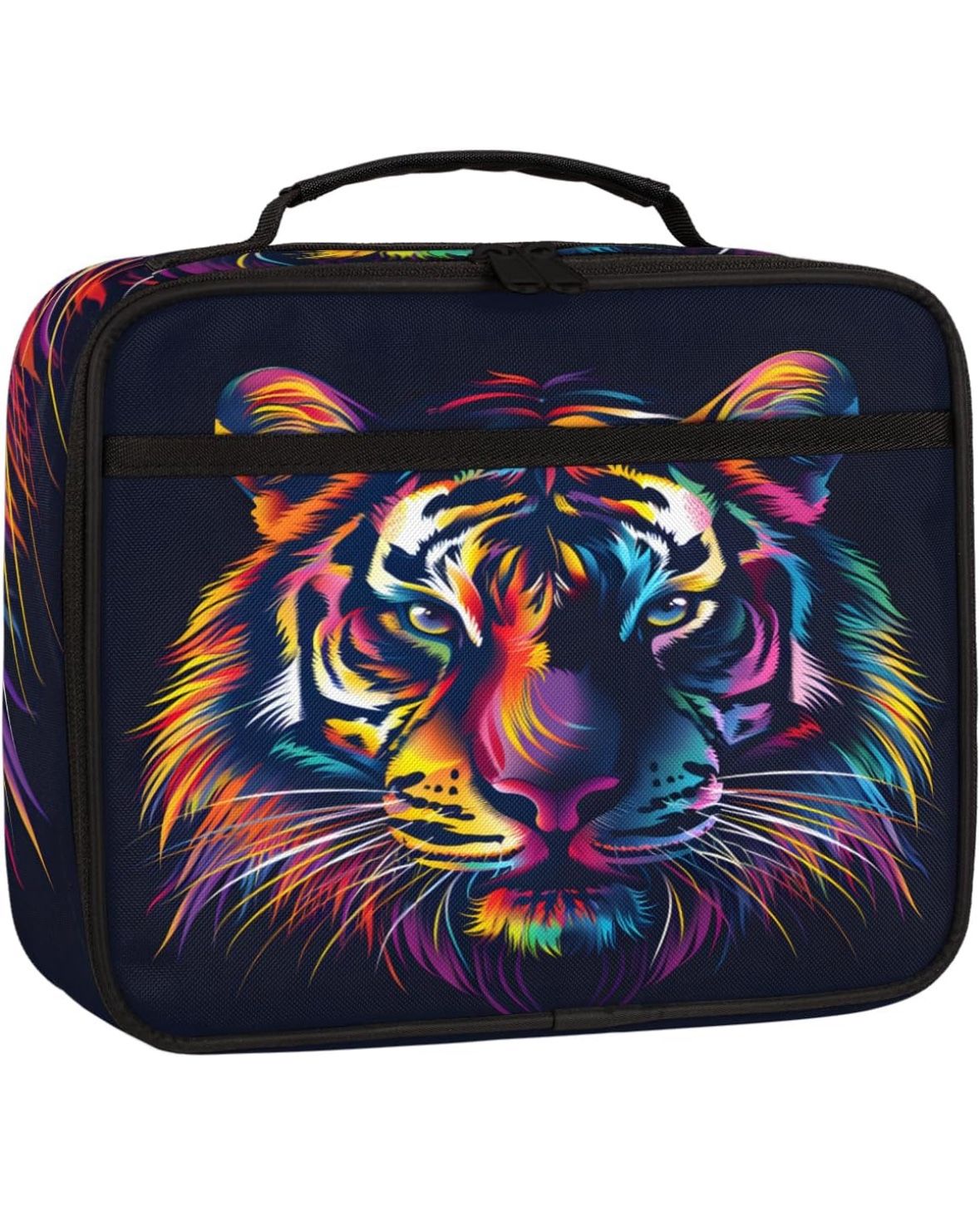 Colorful Tigers Lunch Box Insulated Lunch Bag Leakproof Lunch Tote Bag Reusable Bento Containers Portable Meal Bags Picnic Tote Lunchbox For Beach Off