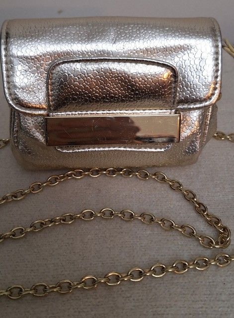 CUTE GOLD METALLIC PURSE VEGAN LEATHER MINI CHAIN CROSSBODY