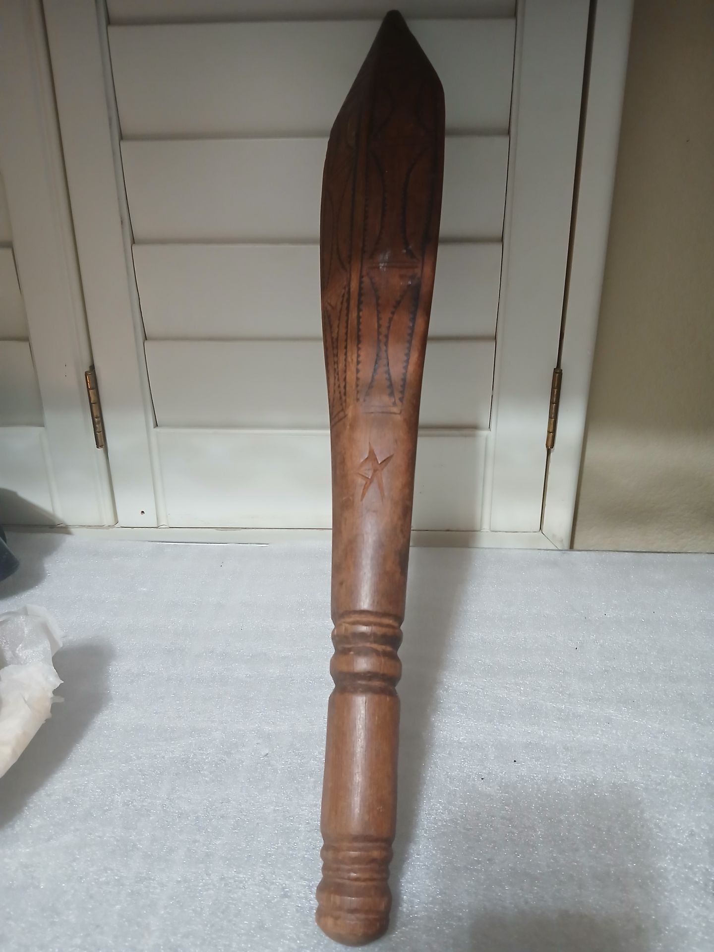 1800s Tribal Hand Carved Wooden Fighting Club. RARE