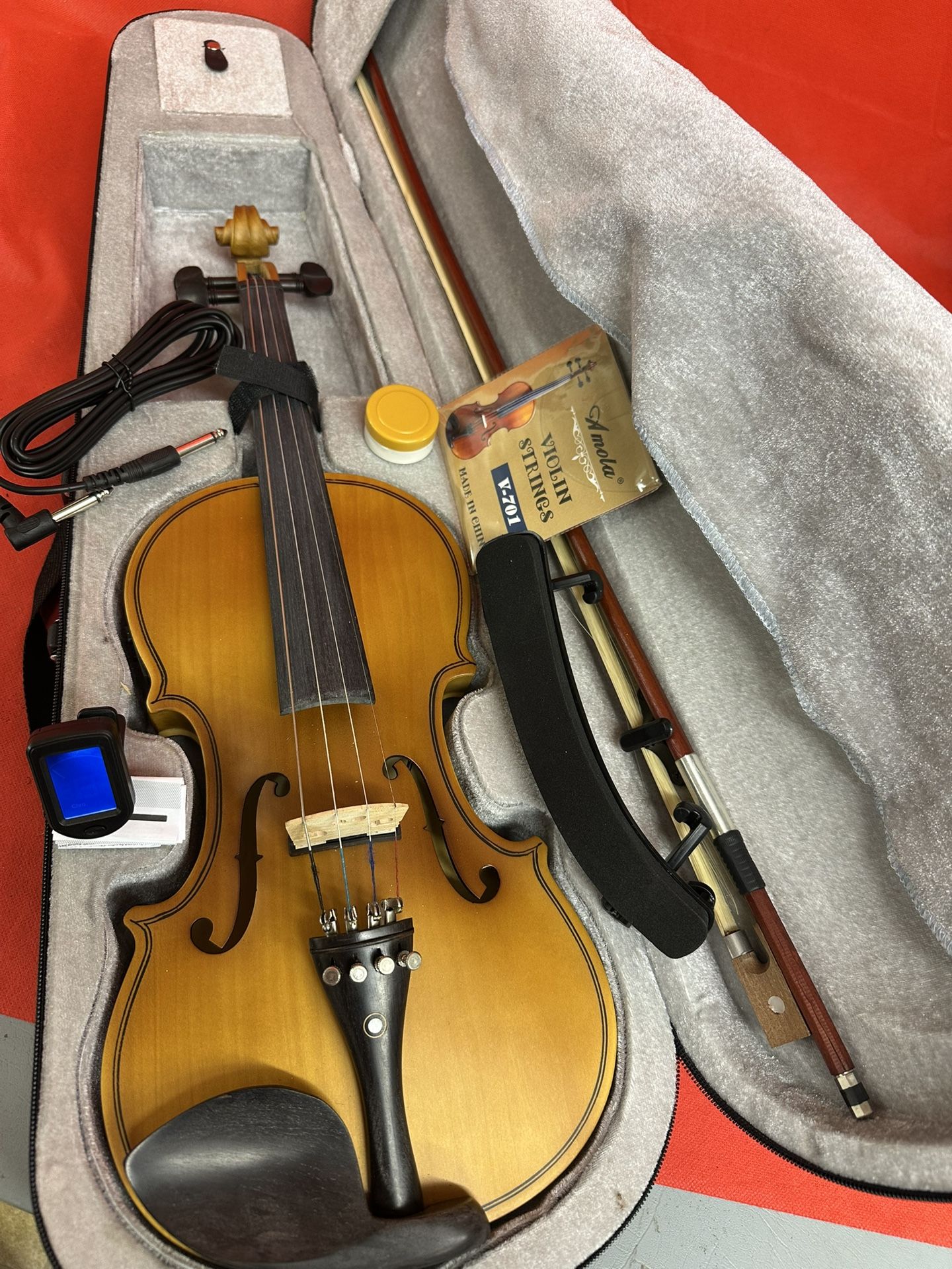 Electric Acoustic Violin with New Bow, Digital Tuner, Shoulder Rest, Extra Strings, Cable, Rosin $160 Firm
