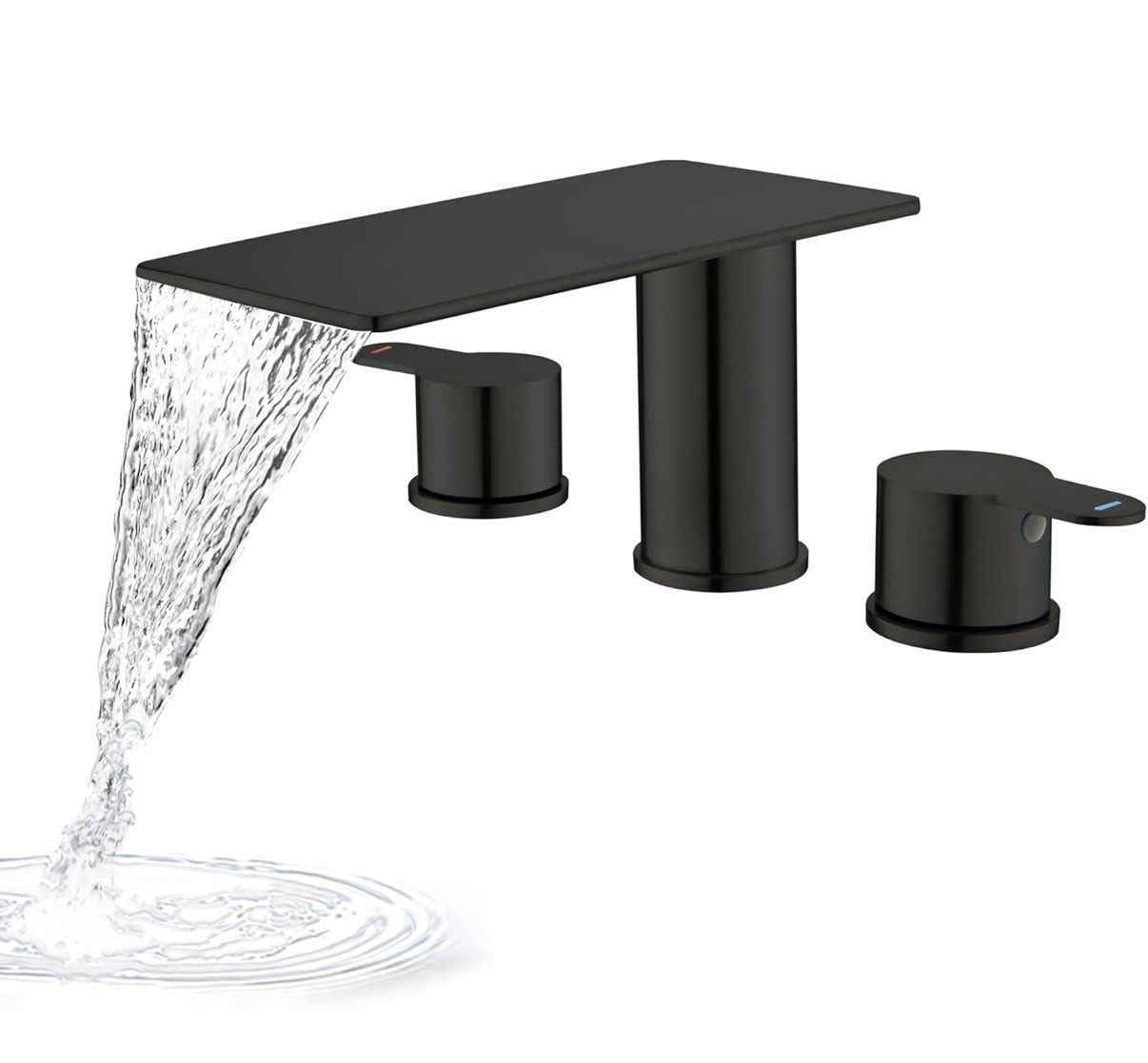 GUOYINDONG Matte Black Roman Tub Faucet, 3 HoleWaterfall Bath Tub Faucet Set High Flow 2 Handle Deck Mount Bathtub Faucets