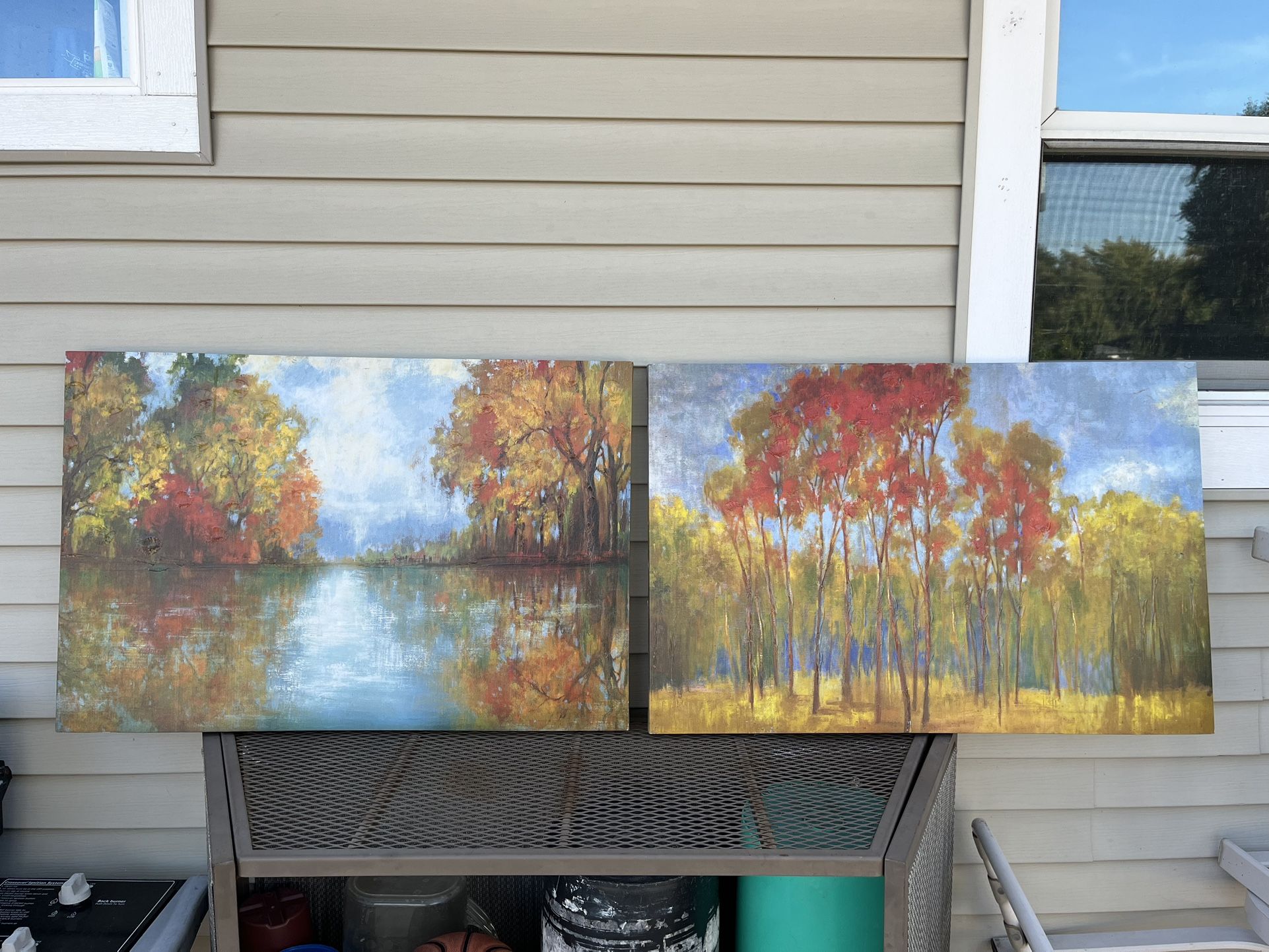I am selling a set of two canvas wall art. Great condition. Great for that first apartment or home. 36in wide by 24in tall. Asking $30 for both together.