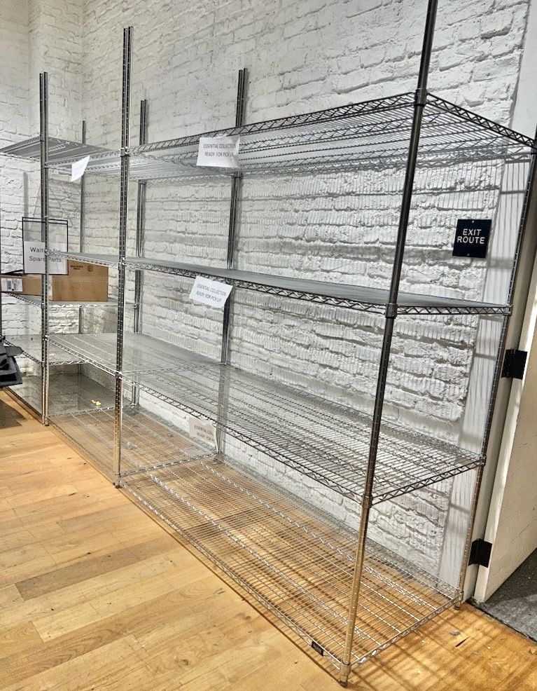Heavy-duty chrome wire racks, 72" tall. 2000lb load capacity per shelf. Real industrial quality at a fraction of the cost. Available in 60x18" ($134) & 60x24" ($166). Quality better than online competitors; compare to Uline. Perfect for warehouses, restaurants, labs, or home. Easy boltless setup. Brand new in box.